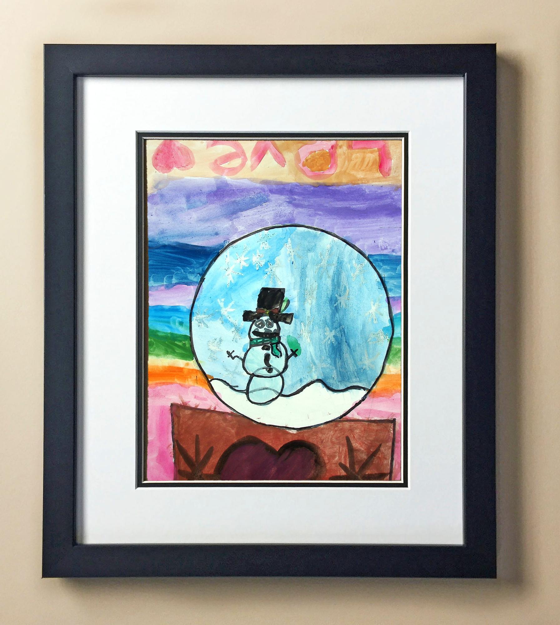 Included with the purchase is the Students Artwork, Frame, double matboard, shatter proof plexiglass, and a ready to hang backerboard with turnbuttons