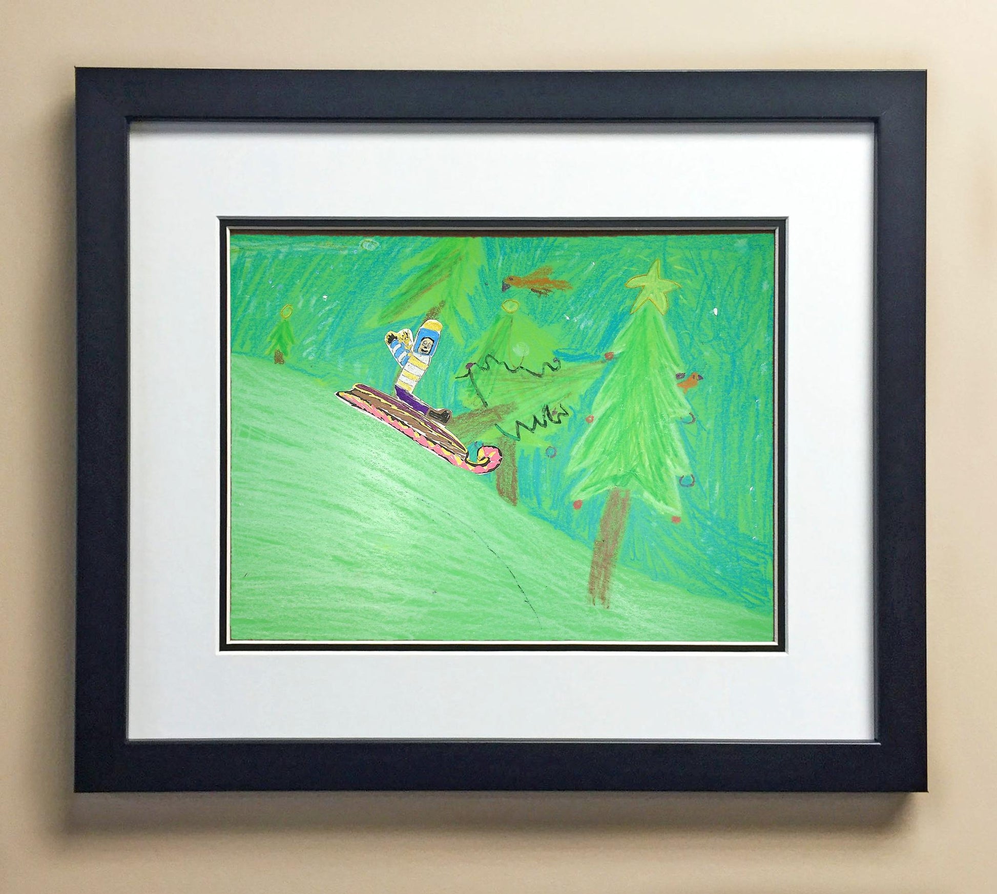 Included with the purchase is the Students Artwork, Frame, double matboard, shatter proof plexiglass, and a ready to hang backerboard with turnbuttons