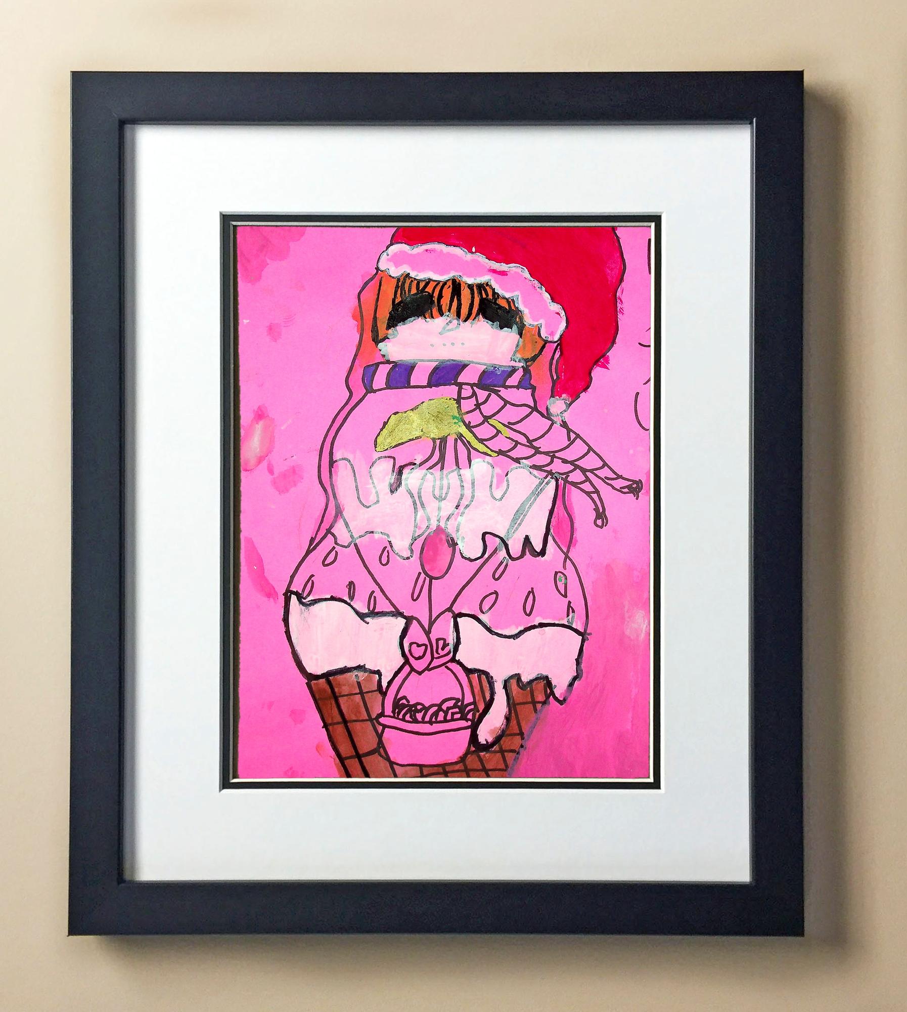 Included with the purchase is the Students Artwork, Frame, double matboard, shatter proof plexiglass, and a ready to hang backerboard with turnbuttons