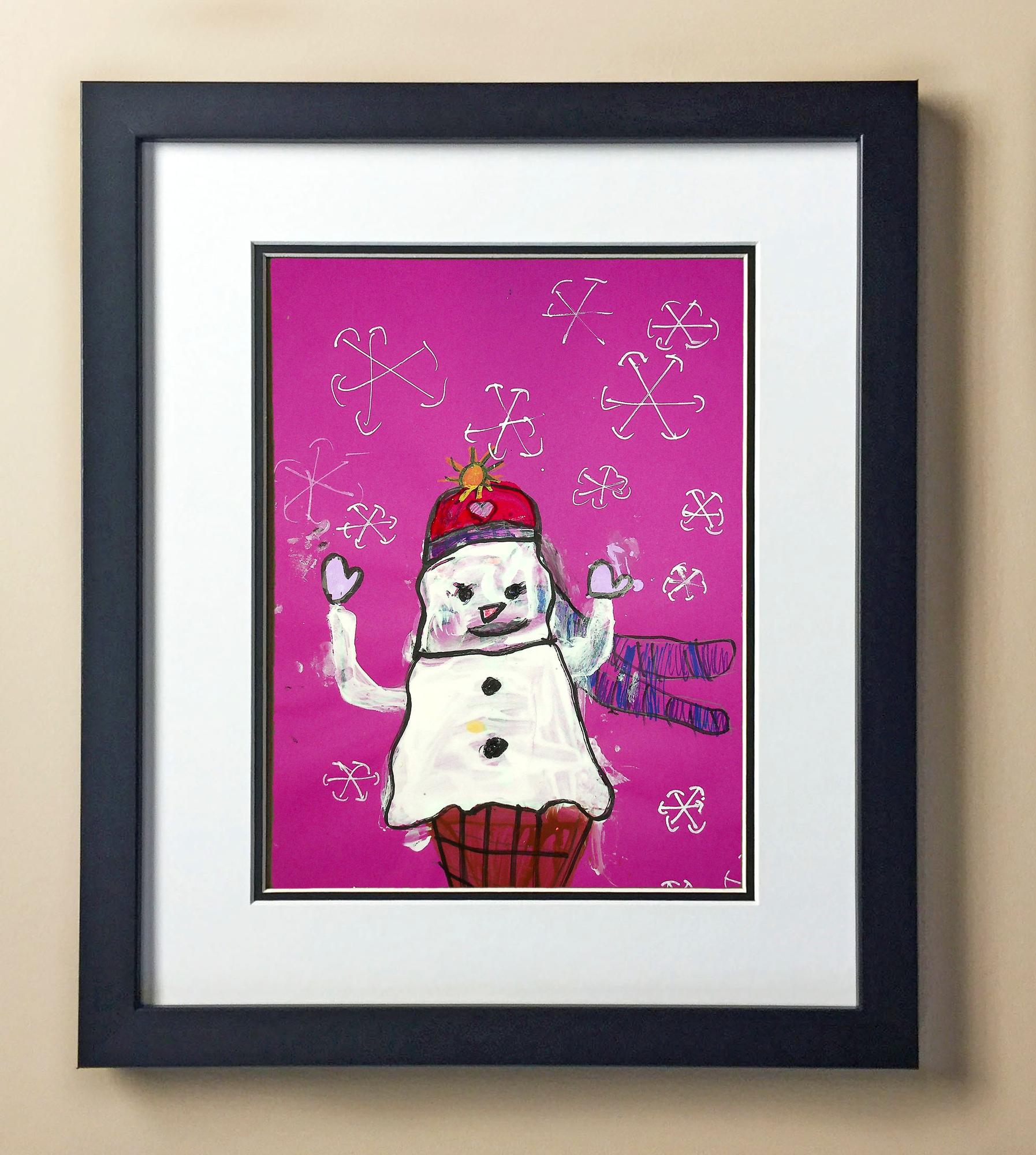 Included with the purchase is the Students Artwork, Frame, double matboard, shatter proof plexiglass, and a ready to hang backerboard with turnbuttons
