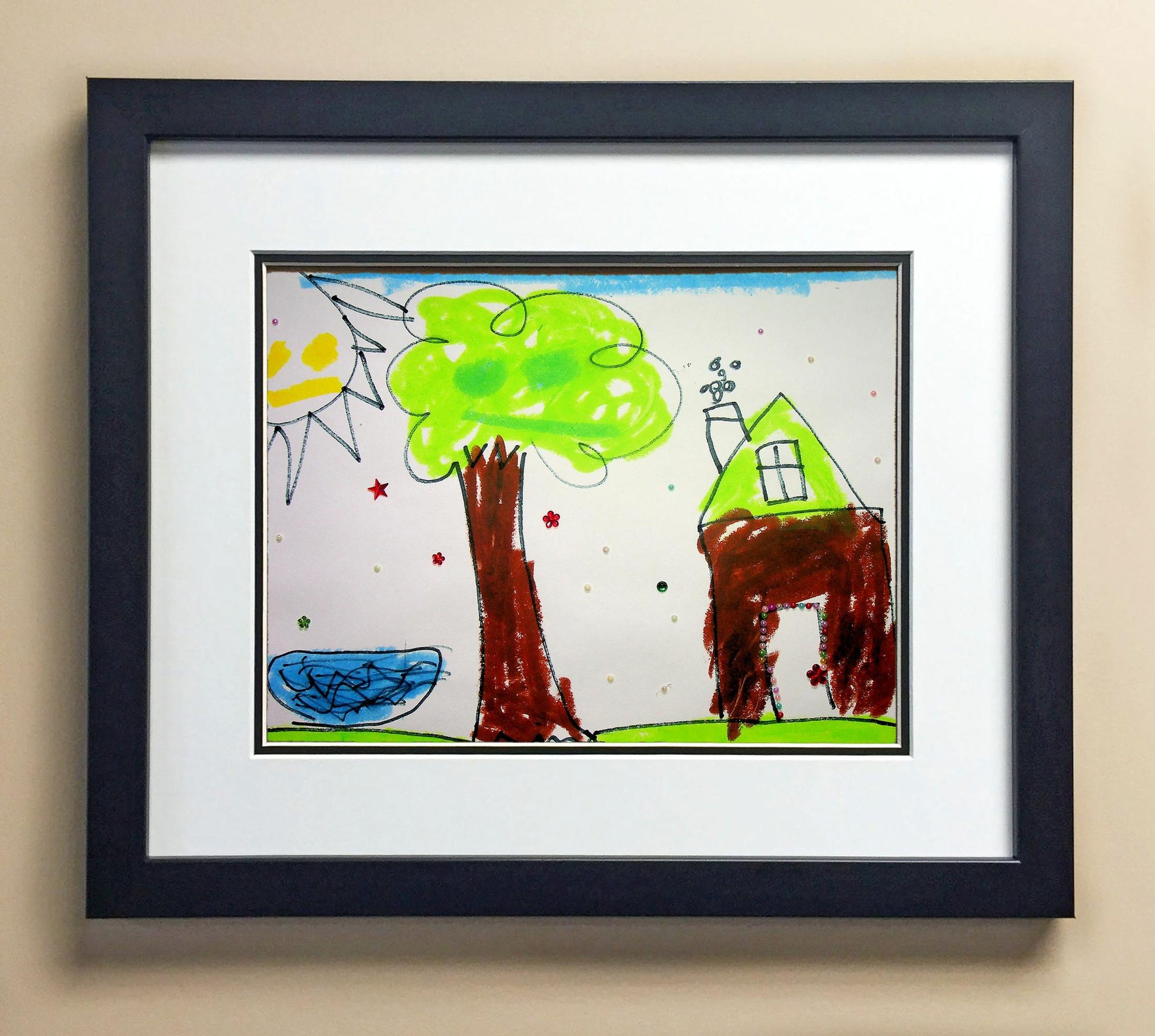 Included with the purchase is the Students Artwork, Frame, double matboard, shatter proof plexiglass, and a ready to hang backerboard with turnbuttons