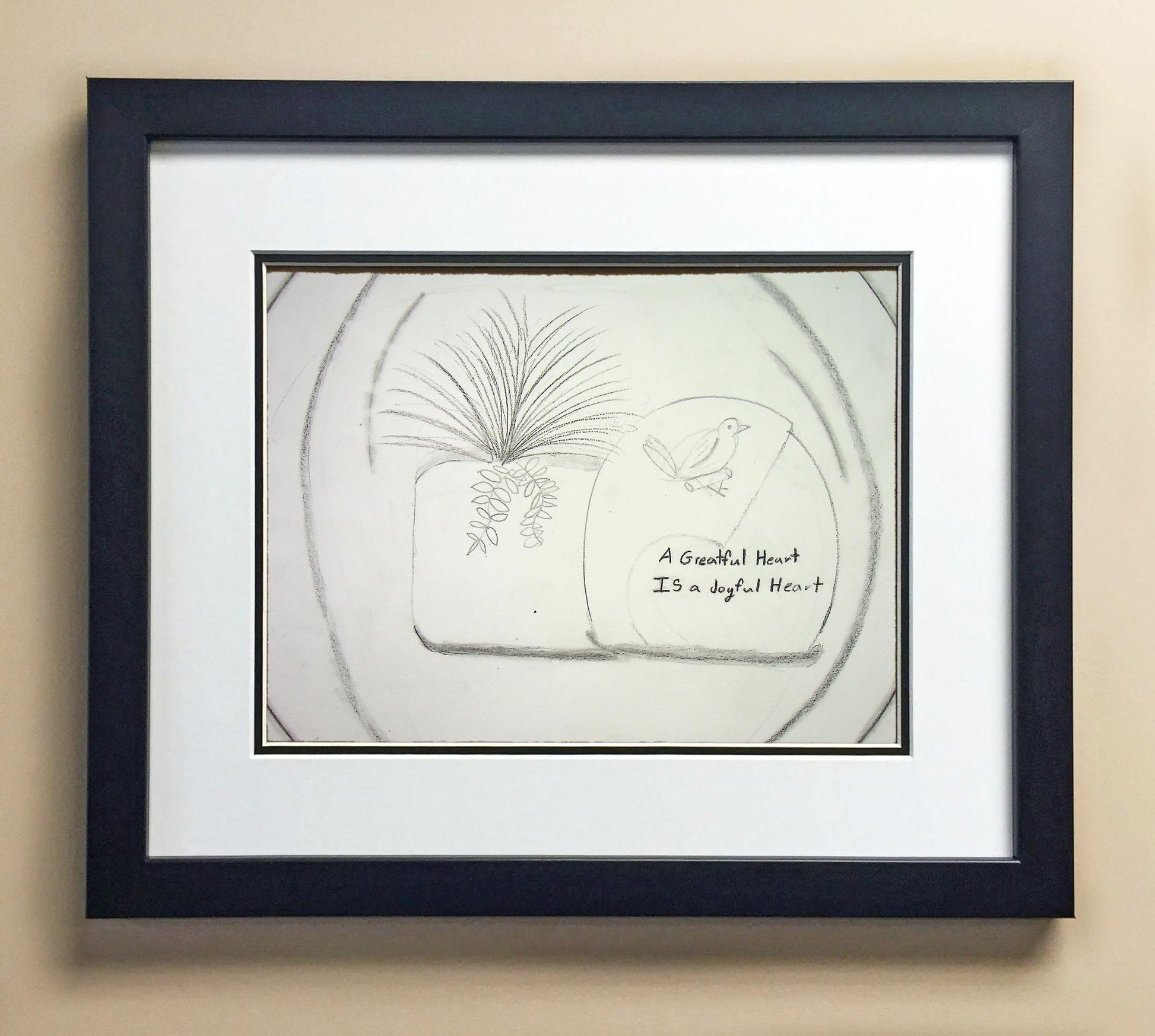 Included with the purchase is the Students Artwork, Frame, double matboard, shatter proof plexiglass, and a ready to hang backerboard with turnbuttons