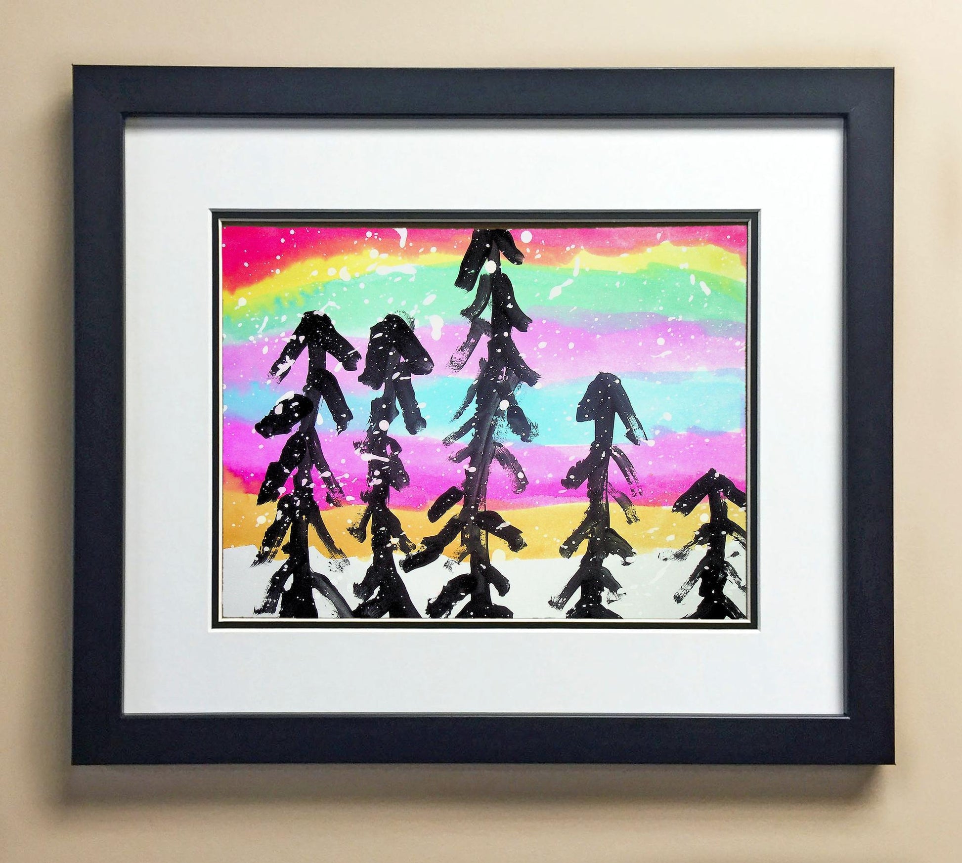 Included with the purchase is the Students Artwork, Frame, double matboard, shatter proof plexiglass, and a ready to hang backerboard with turnbuttons