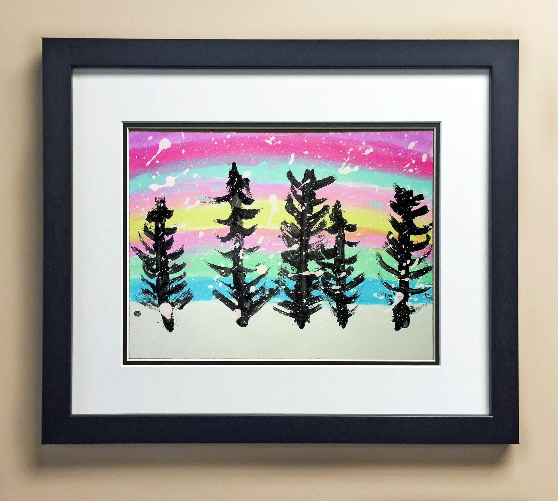 Included with the purchase is the Students Artwork, Frame, double matboard, shatter proof plexiglass, and a ready to hang backerboard with turnbuttons