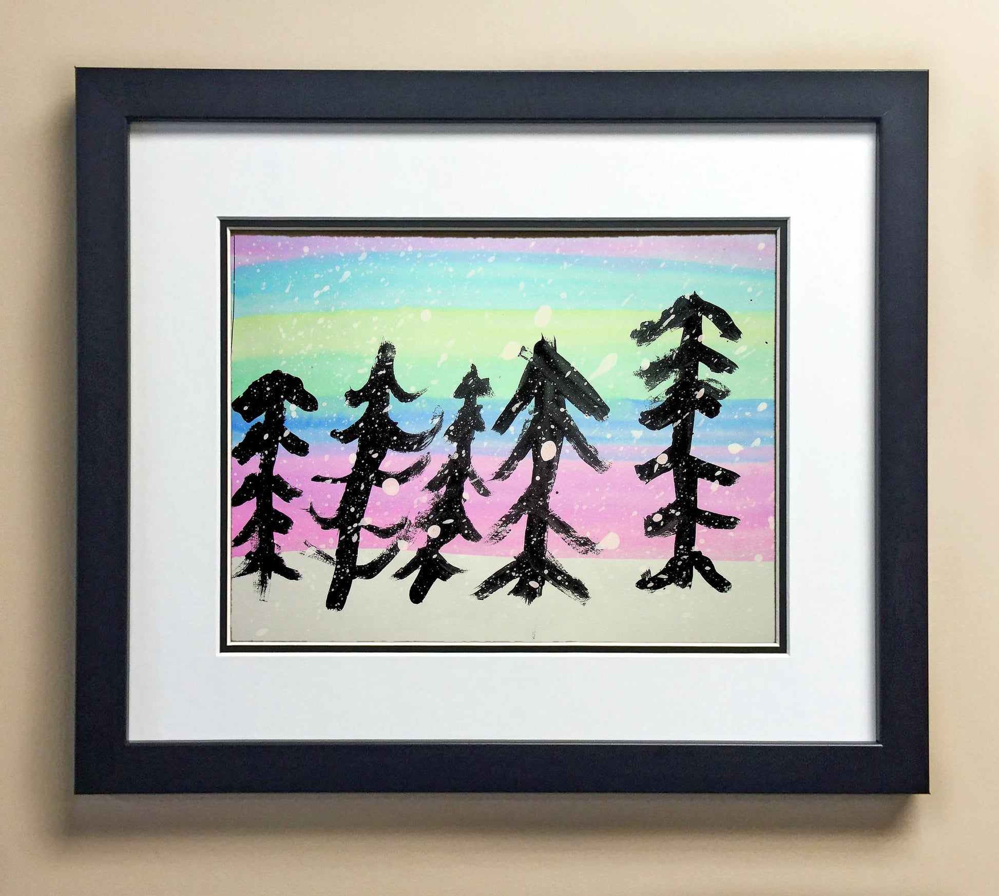 Included with the purchase is the Students Artwork, Frame, double matboard, shatter proof plexiglass, and a ready to hang backerboard with turnbuttons