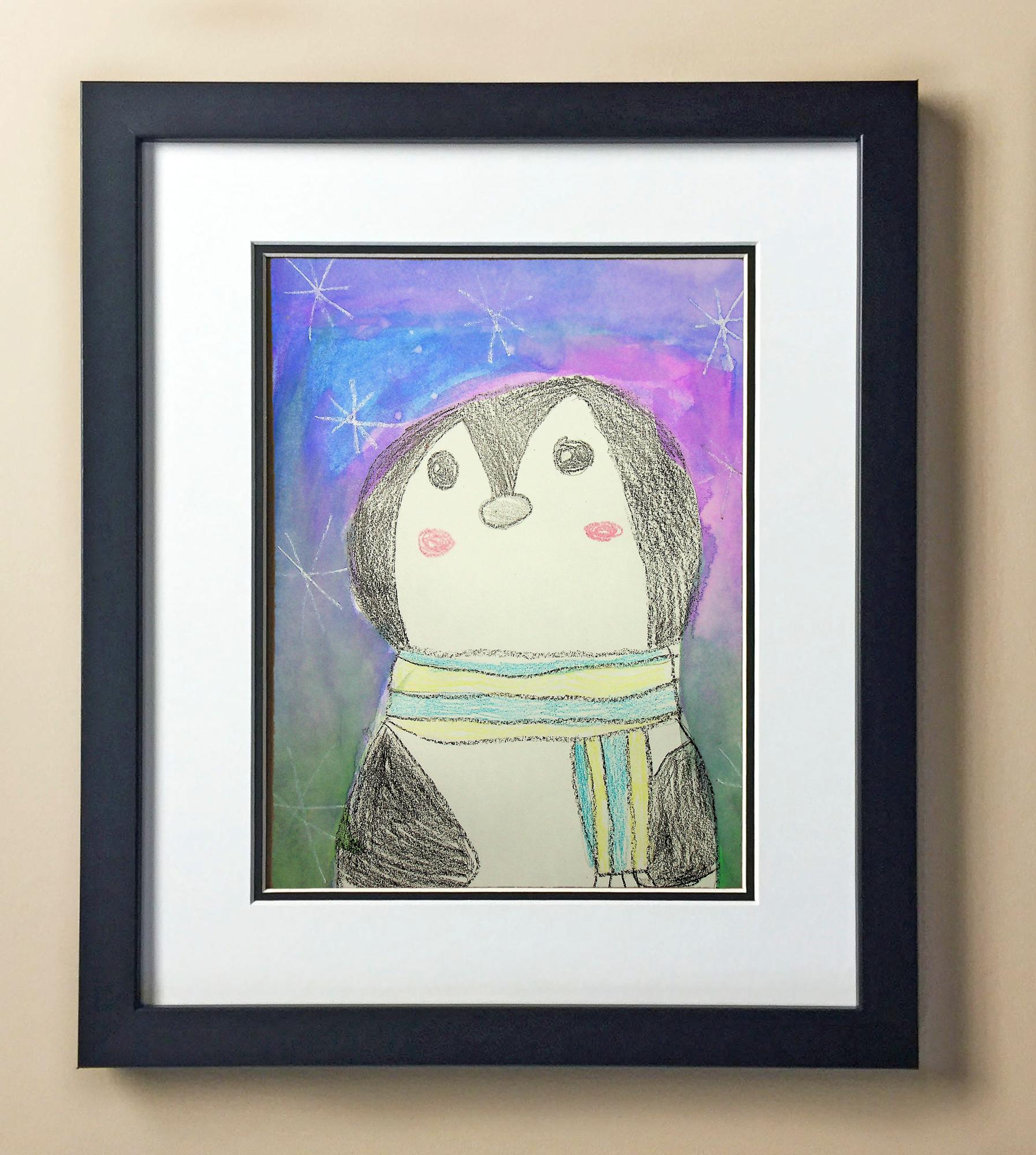 Included with the purchase is the Students Artwork, Frame, double matboard, shatter proof plexiglass, and a ready to hang backerboard with turnbuttons
