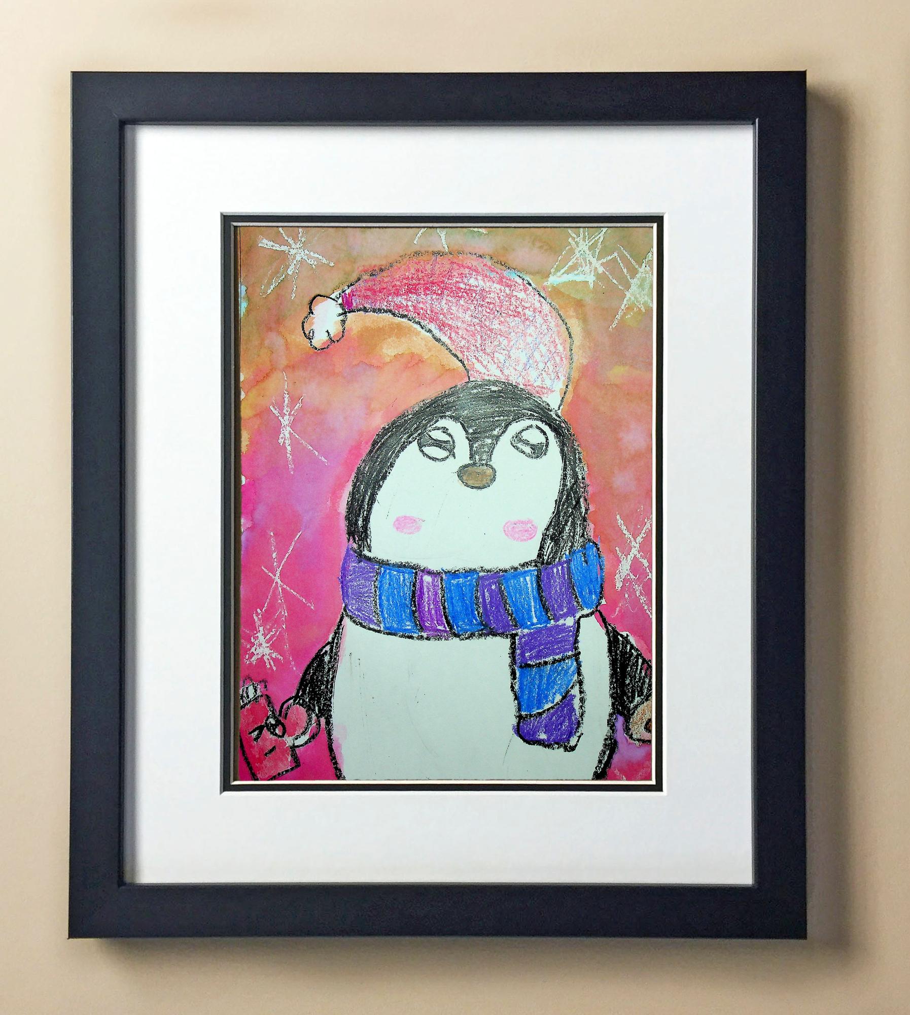 Included with the purchase is the Students Artwork, Frame, double matboard, shatter proof plexiglass, and a ready to hang backerboard with turnbuttons