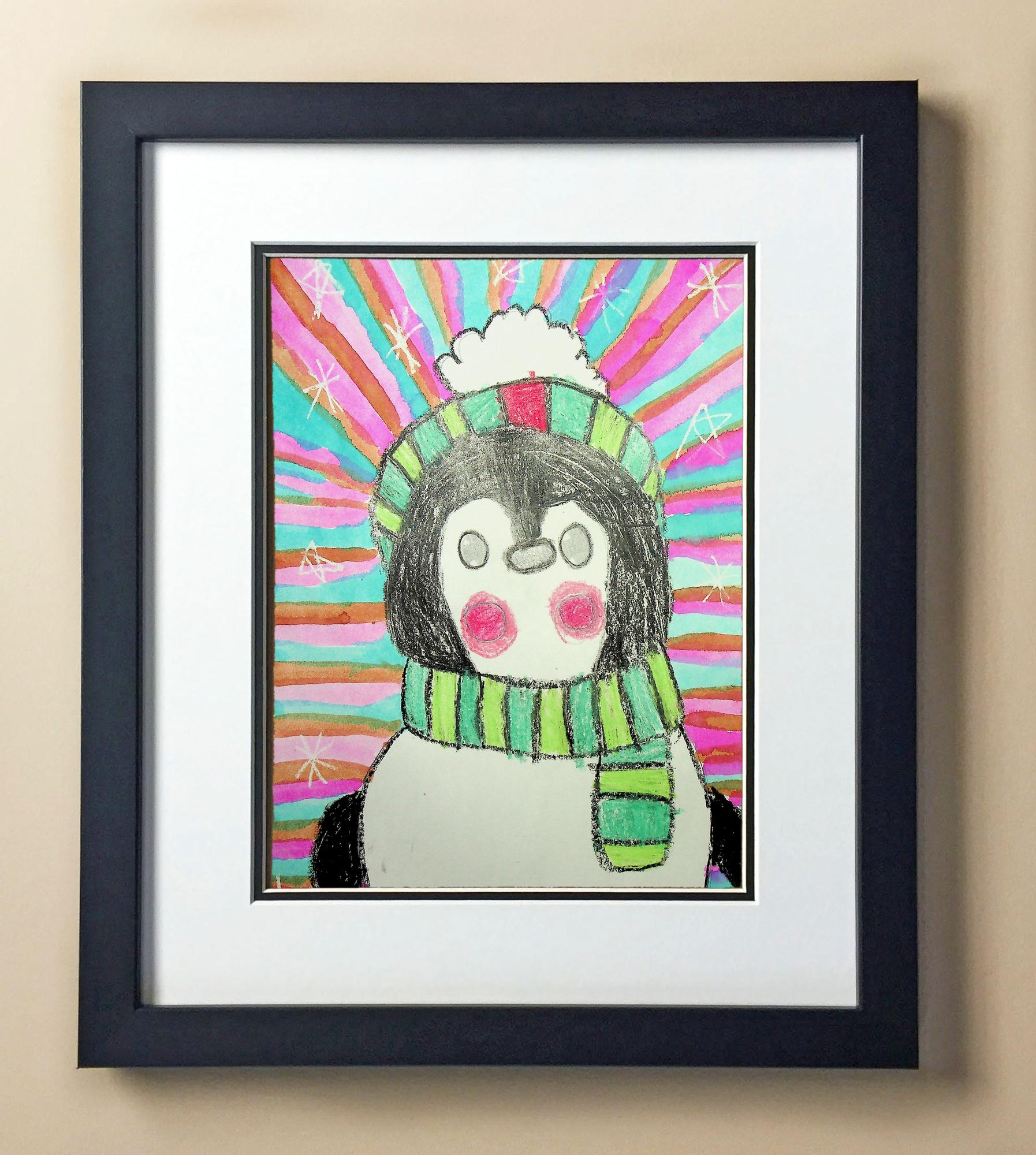 Included with the purchase is the Students Artwork, Frame, double matboard, shatter proof plexiglass, and a ready to hang backerboard with turnbuttons