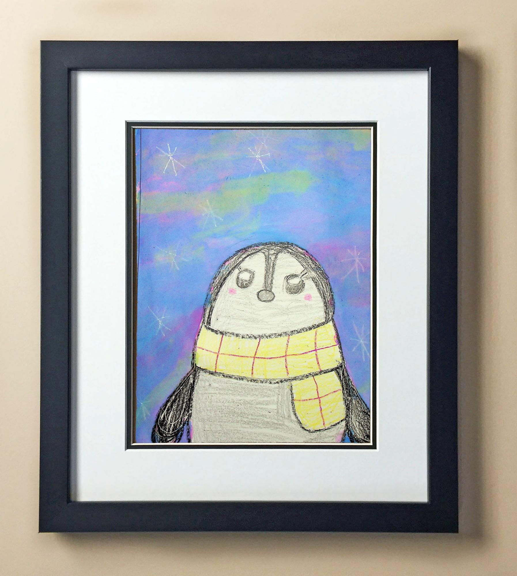 Included with the purchase is the Students Artwork, Frame, double matboard, shatter proof plexiglass, and a ready to hang backerboard with turnbuttons