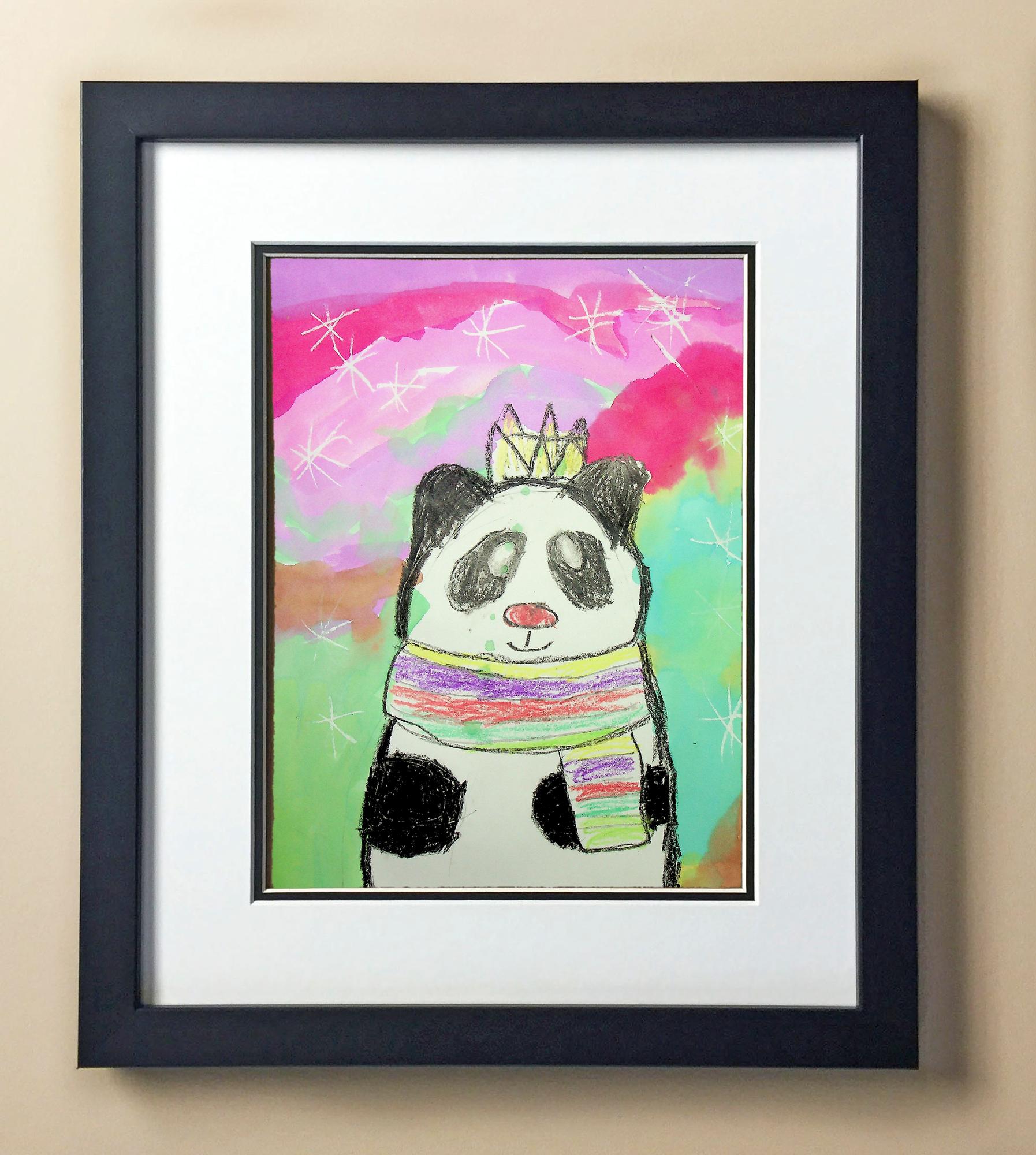 Included with the purchase is the Students Artwork, Frame, double matboard, shatter proof plexiglass, and a ready to hang backerboard with turnbuttons