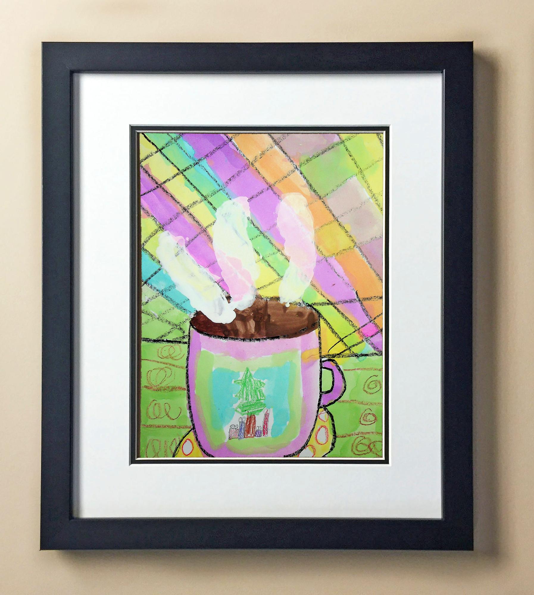 Included with the purchase is the Students Artwork, Frame, double matboard, shatter proof plexiglass, and a ready to hang backerboard with turnbuttons