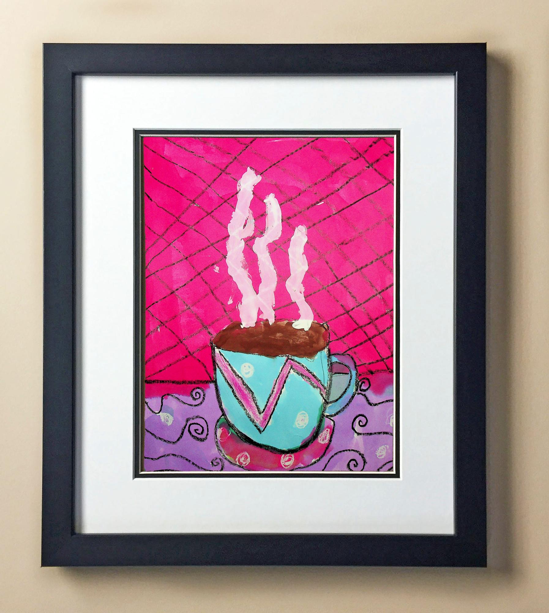 Included with the purchase is the Students Artwork, Frame, double matboard, shatter proof plexiglass, and a ready to hang backerboard with turnbuttons