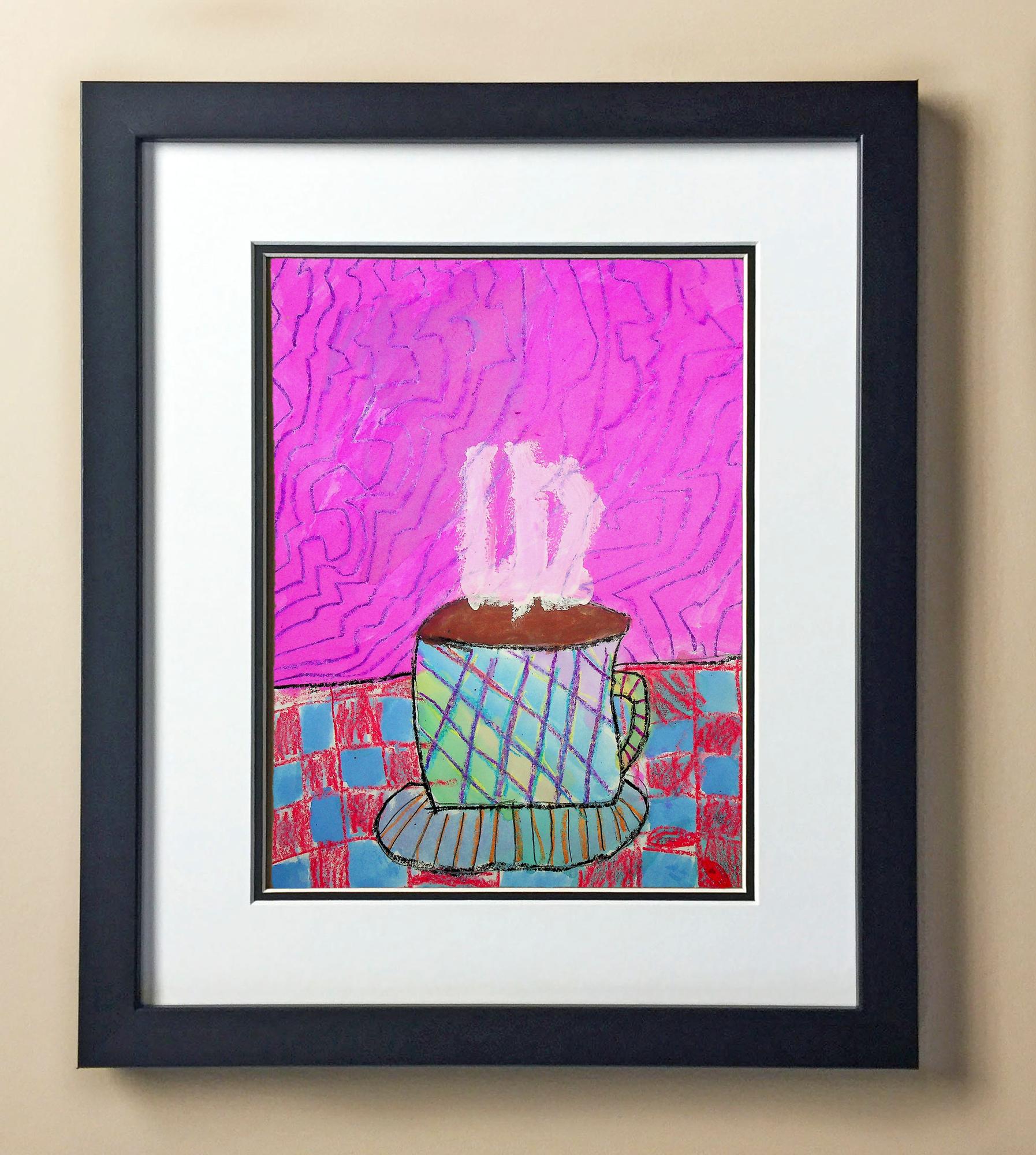 Included with the purchase is the Students Artwork, Frame, double matboard, shatter proof plexiglass, and a ready to hang backerboard with turnbuttons