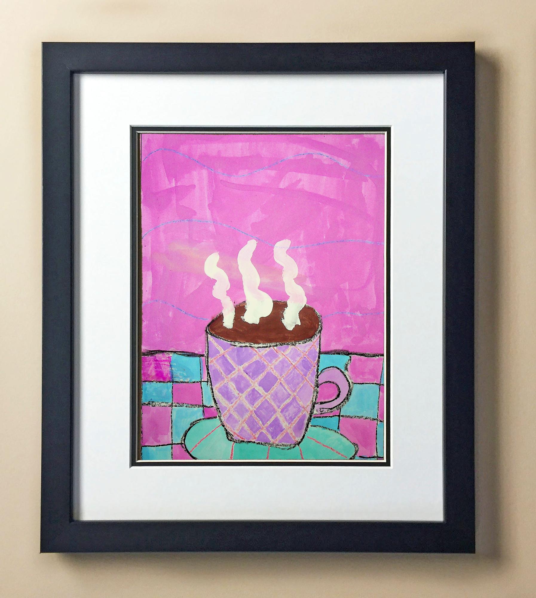 Included with the purchase is the Students Artwork, Frame, double matboard, shatter proof plexiglass, and a ready to hang backerboard with turnbuttons