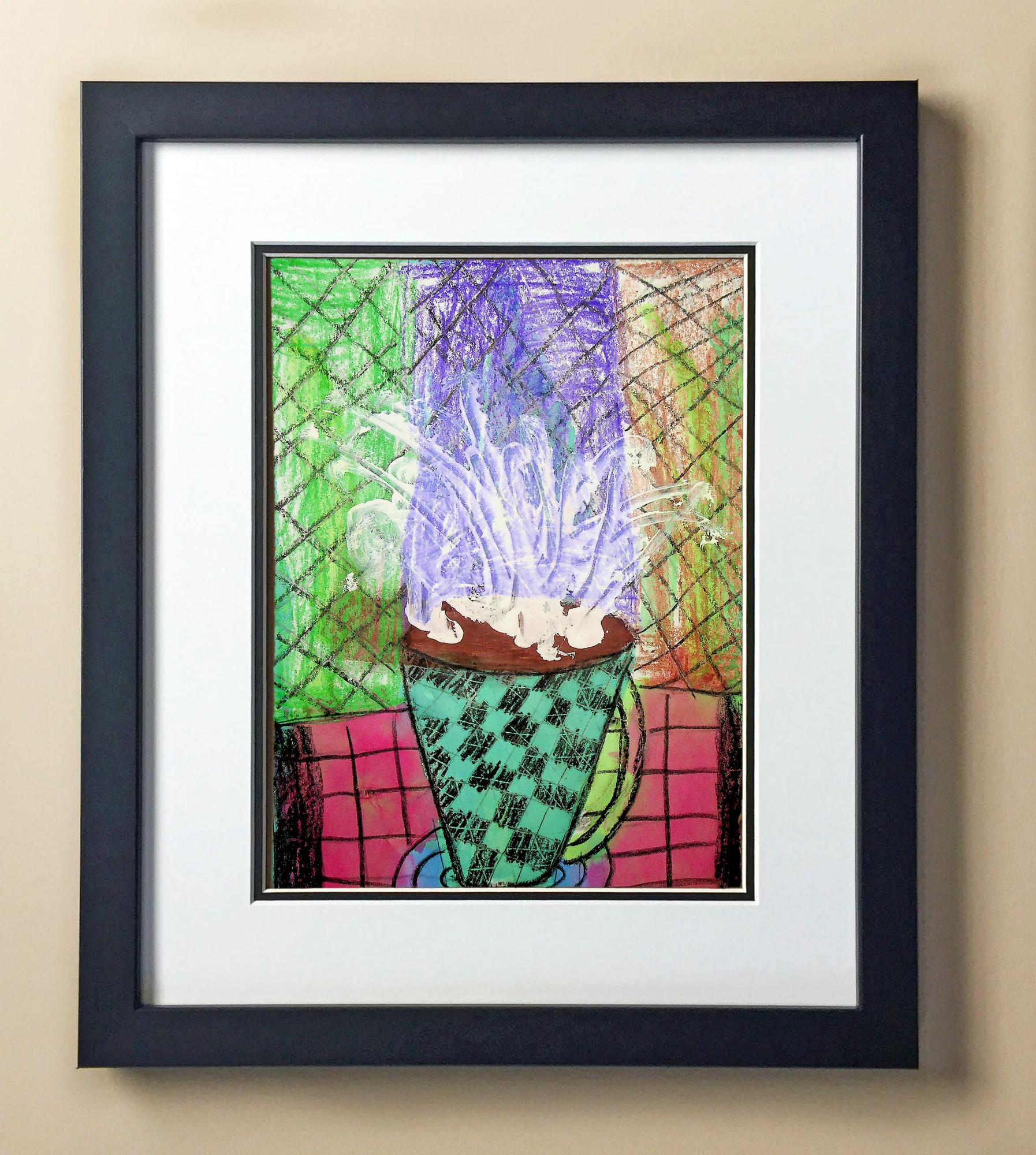 Included with the purchase is the Students Artwork, Frame, double matboard, shatter proof plexiglass, and a ready to hang backerboard with turnbuttons