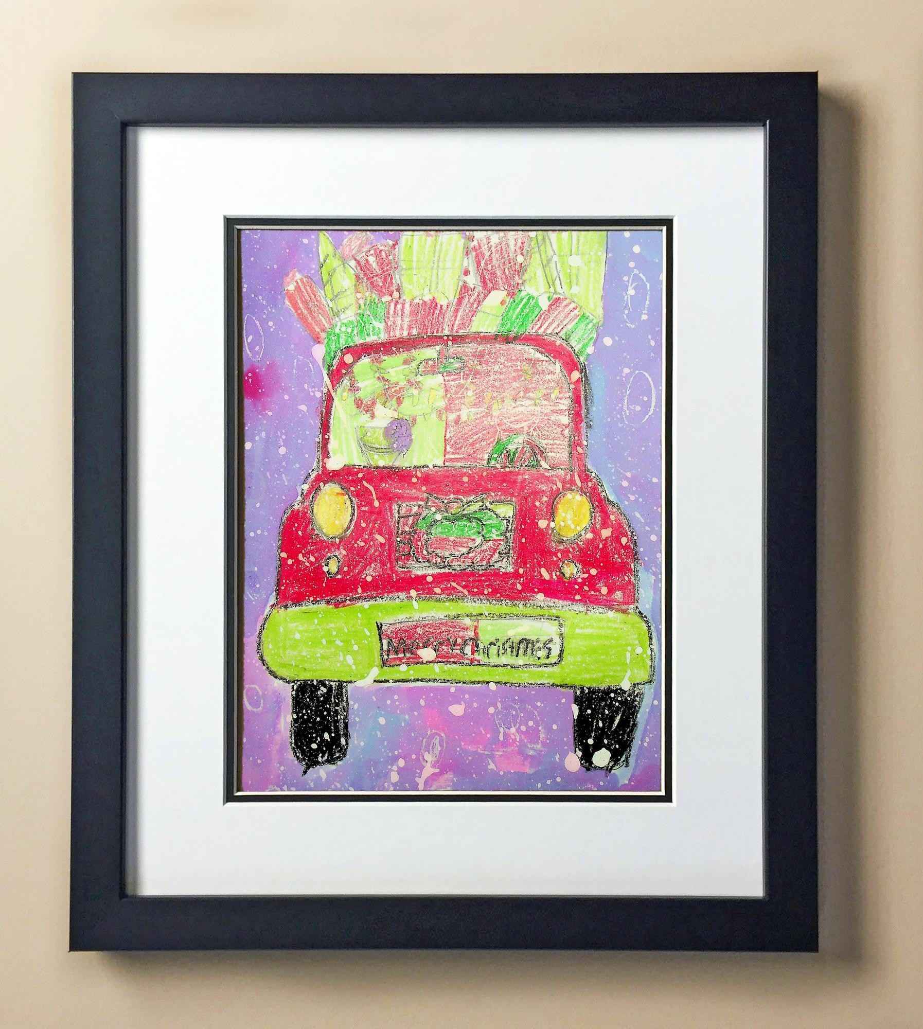 Included with the purchase is the Students Artwork, Frame, double matboard, shatter proof plexiglass, and a ready to hang backerboard with turnbuttons