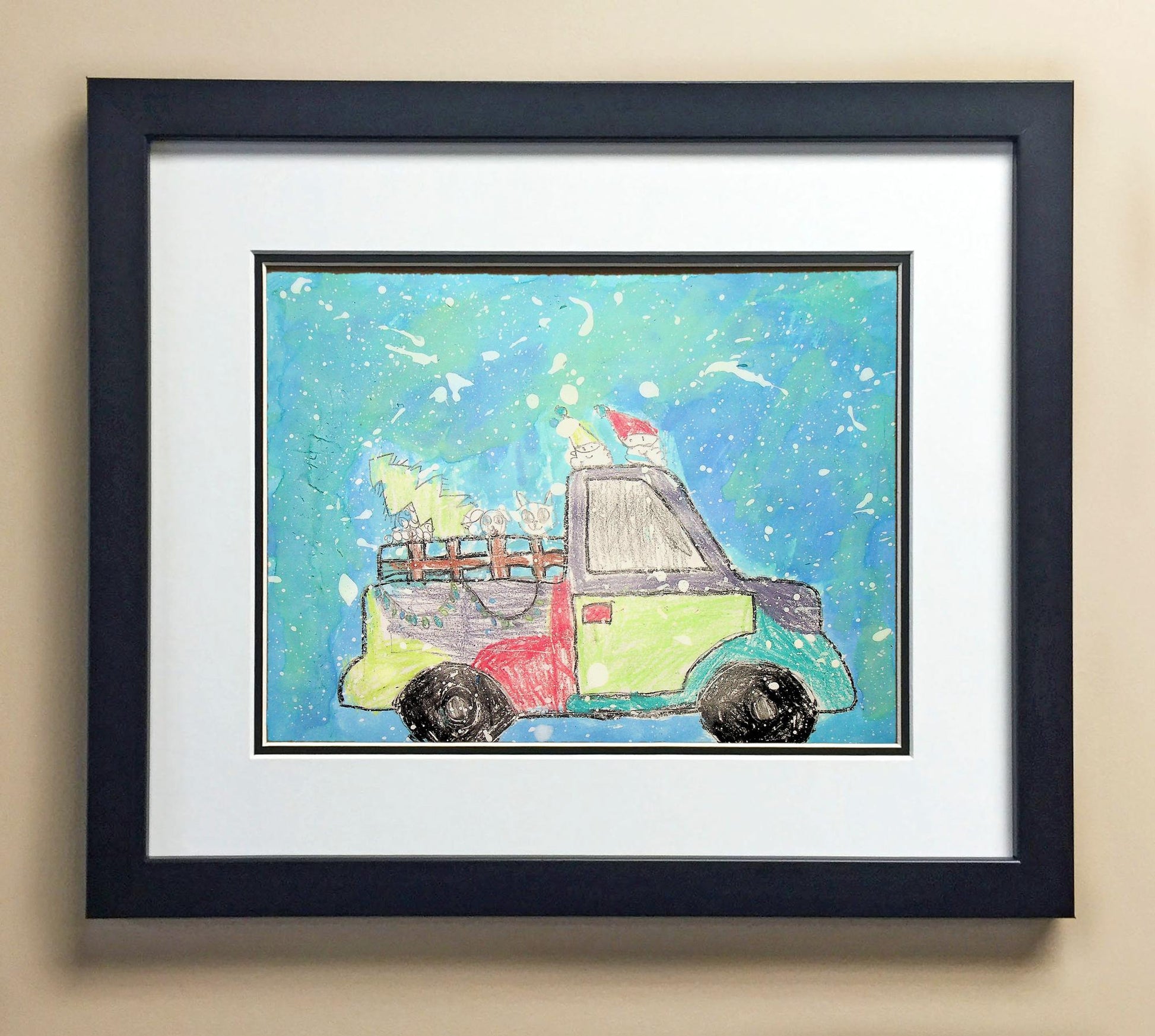 Included with the purchase is the Students Artwork, Frame, double matboard, shatter proof plexiglass, and a ready to hang backerboard with turnbuttons