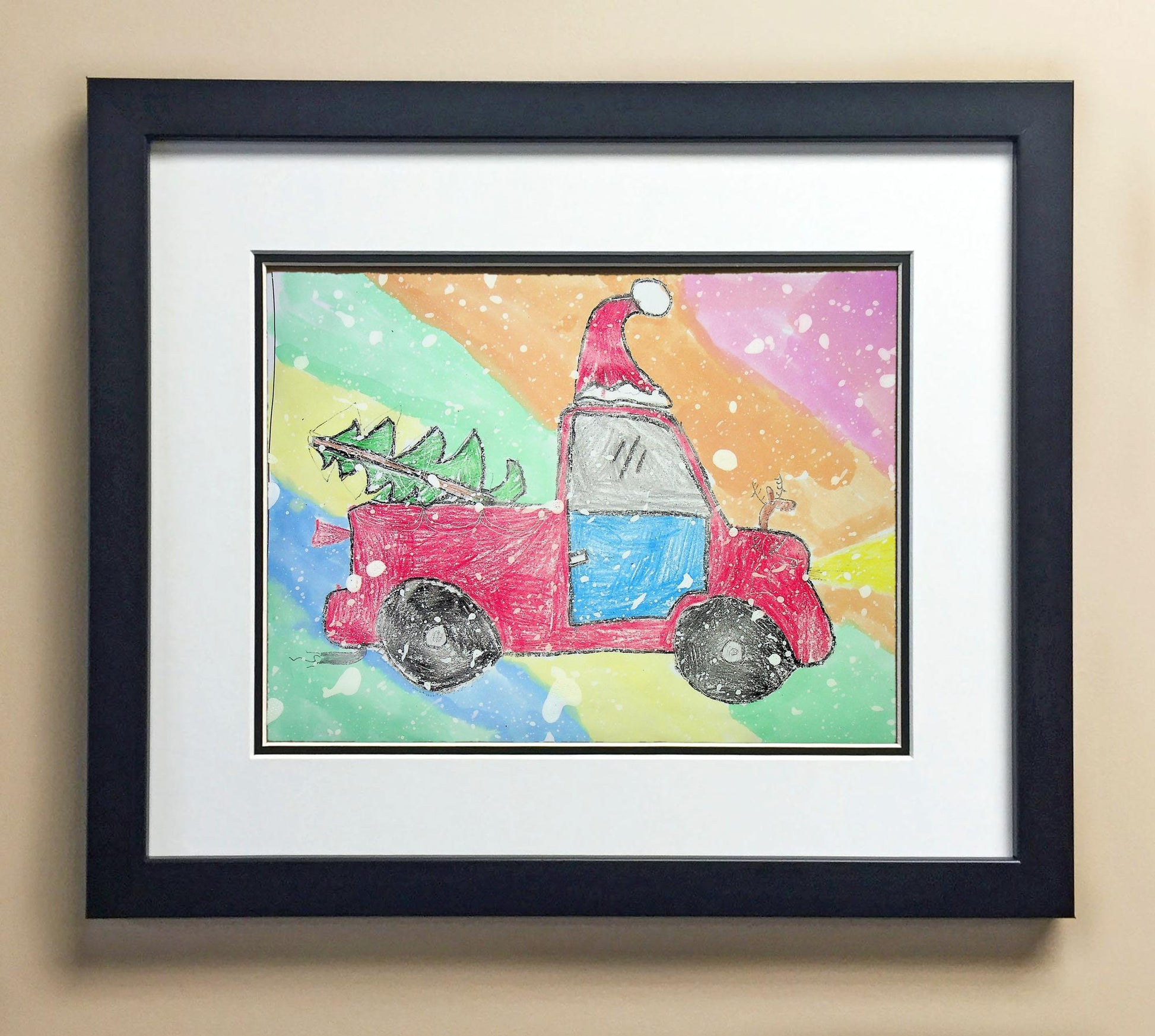 Included with the purchase is the Students Artwork, Frame, double matboard, shatter proof plexiglass, and a ready to hang backerboard with turnbuttons
