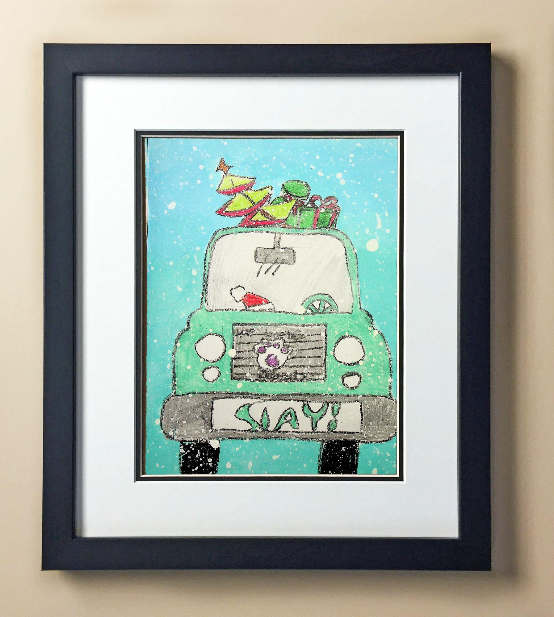 Included with the purchase is the Students Artwork, Frame, double matboard, shatter proof plexiglass, and a ready to hang backerboard with turnbuttons