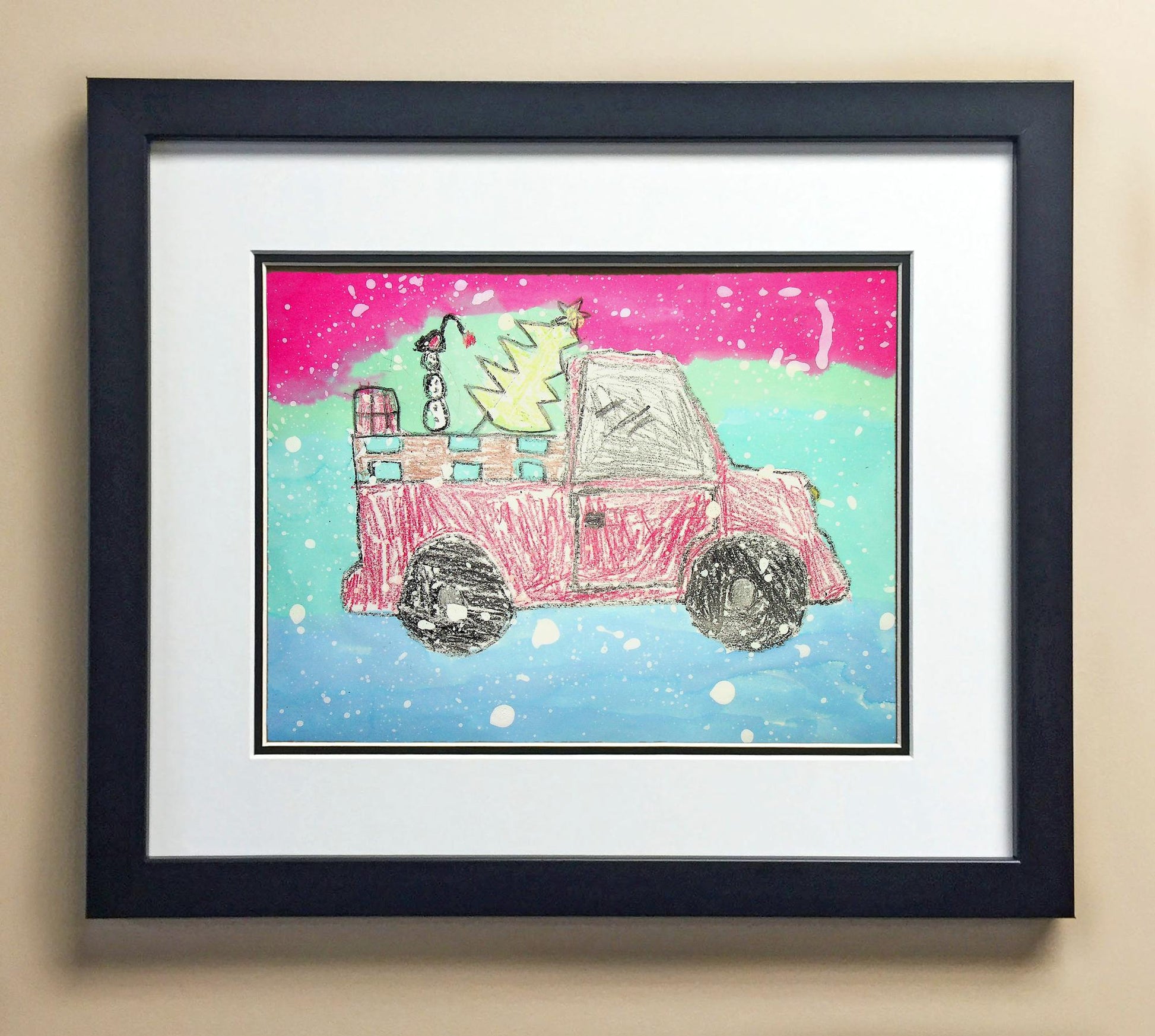 Included with the purchase is the Students Artwork, Frame, double matboard, shatter proof plexiglass, and a ready to hang backerboard with turnbuttons