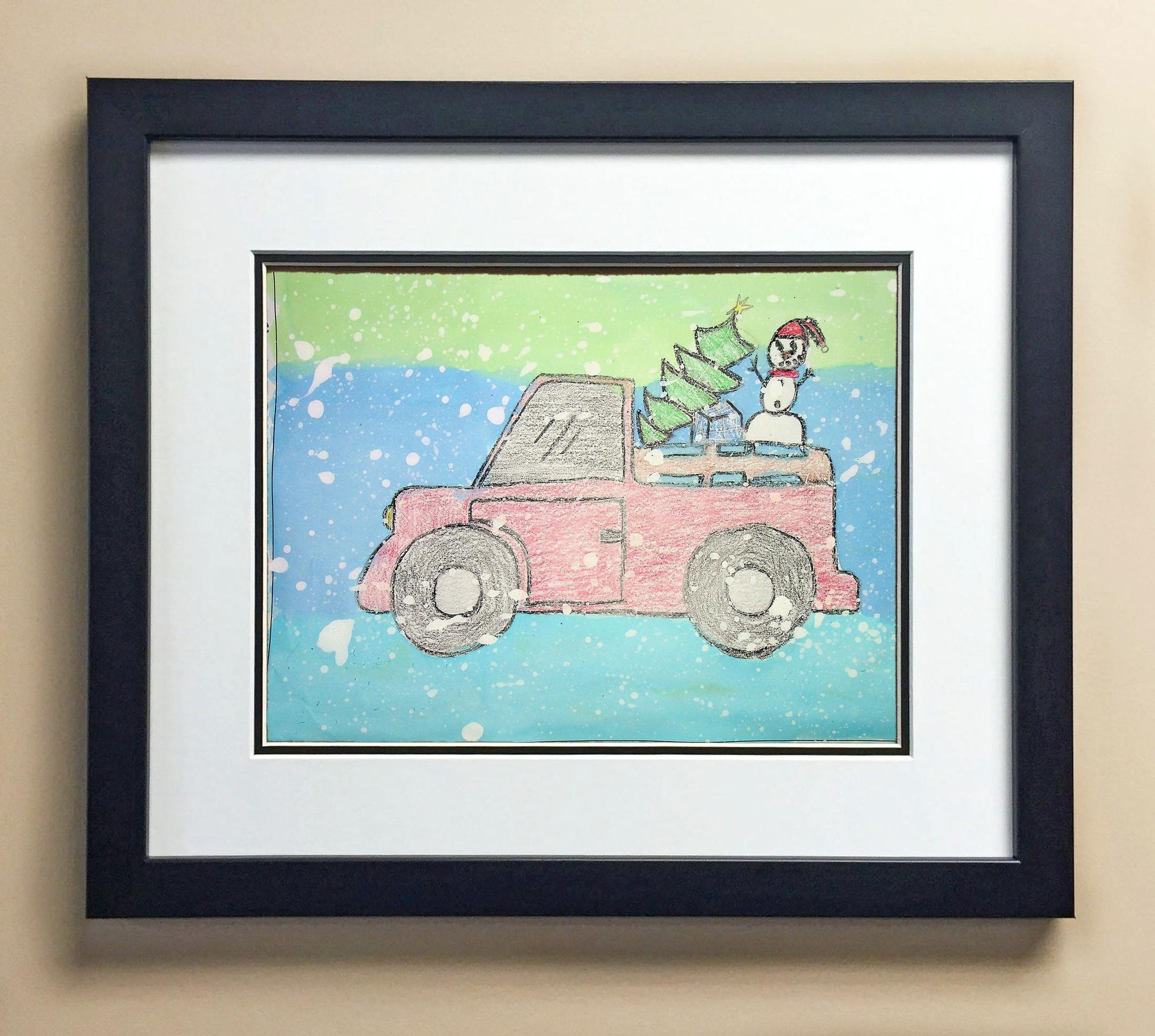 Included with the purchase is the Students Artwork, Frame, double matboard, shatter proof plexiglass, and a ready to hang backerboard with turnbuttons