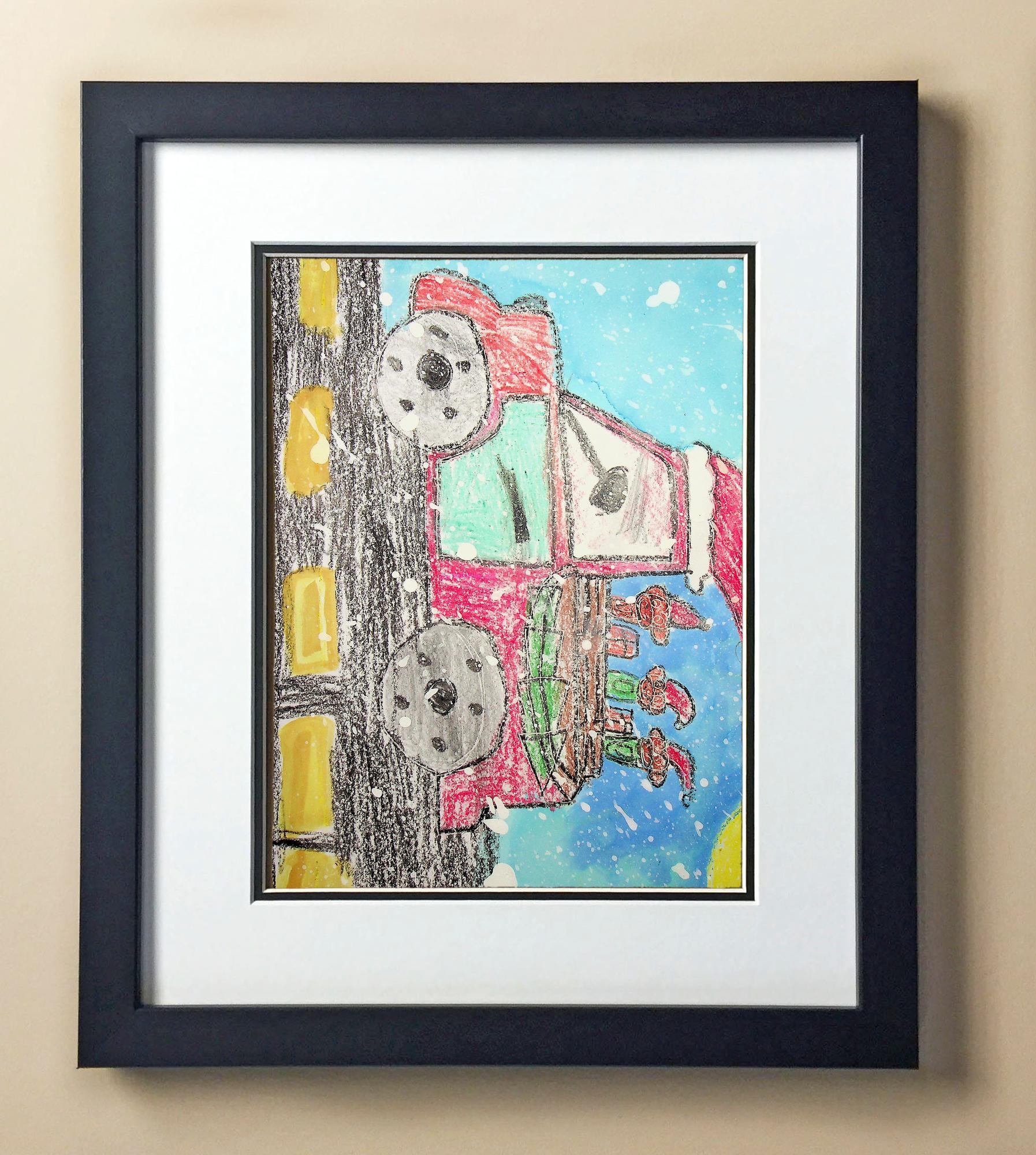 Included with the purchase is the Students Artwork, Frame, double matboard, shatter proof plexiglass, and a ready to hang backerboard with turnbuttons