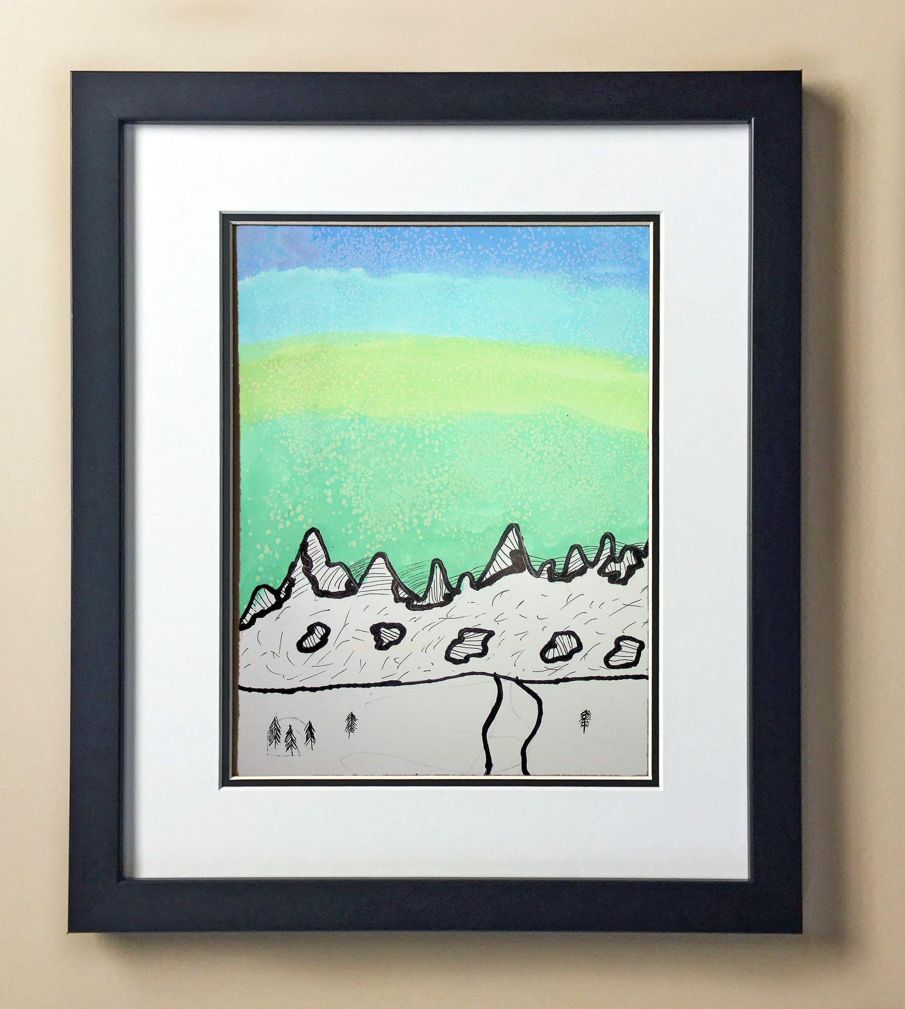 Included with the purchase is the Students Artwork, Frame, double matboard, shatter proof plexiglass, and a ready to hang backerboard with turnbuttons