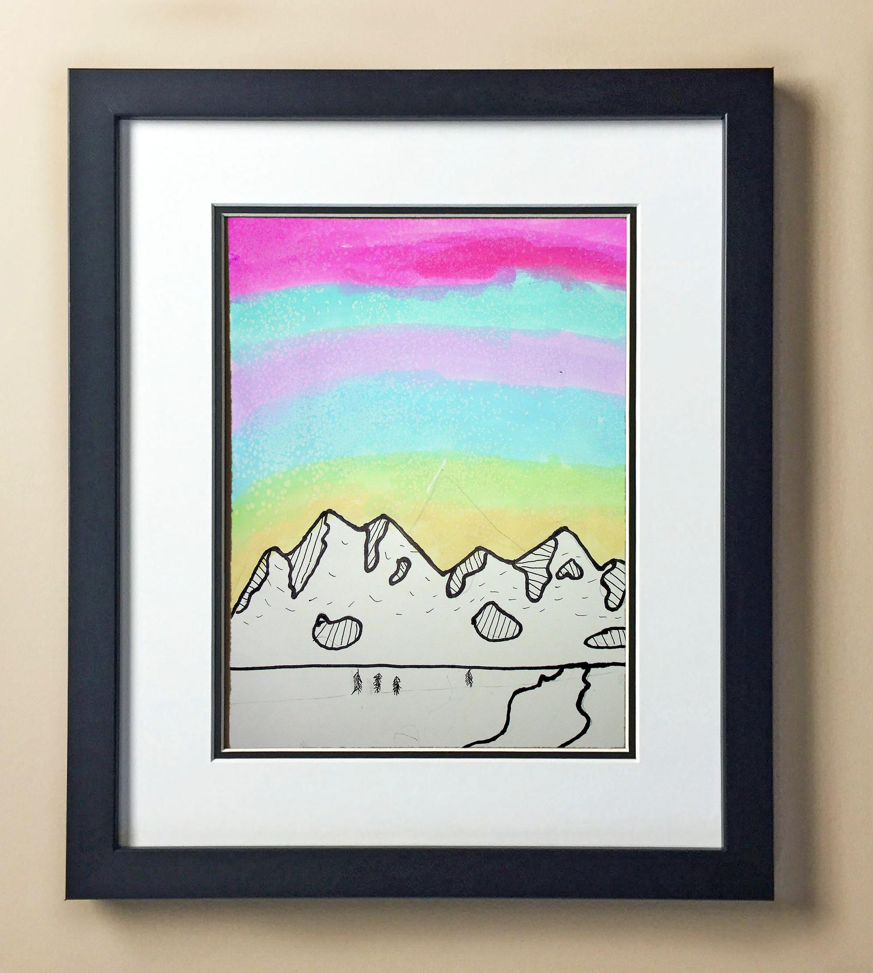 Included with the purchase is the Students Artwork, Frame, double matboard, shatter proof plexiglass, and a ready to hang backerboard with turnbuttons