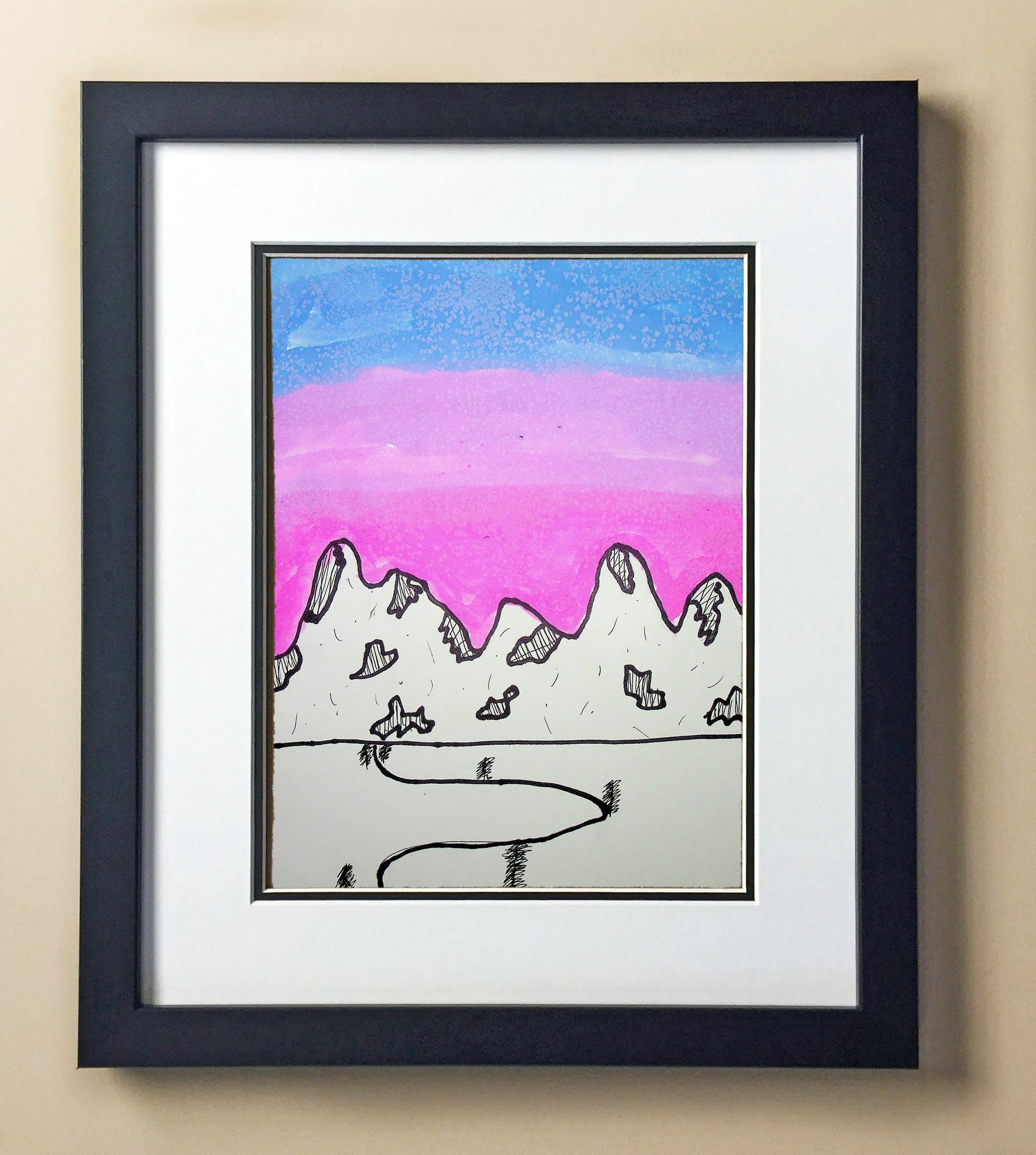 Included with the purchase is the Students Artwork, Frame, double matboard, shatter proof plexiglass, and a ready to hang backerboard with turnbuttons