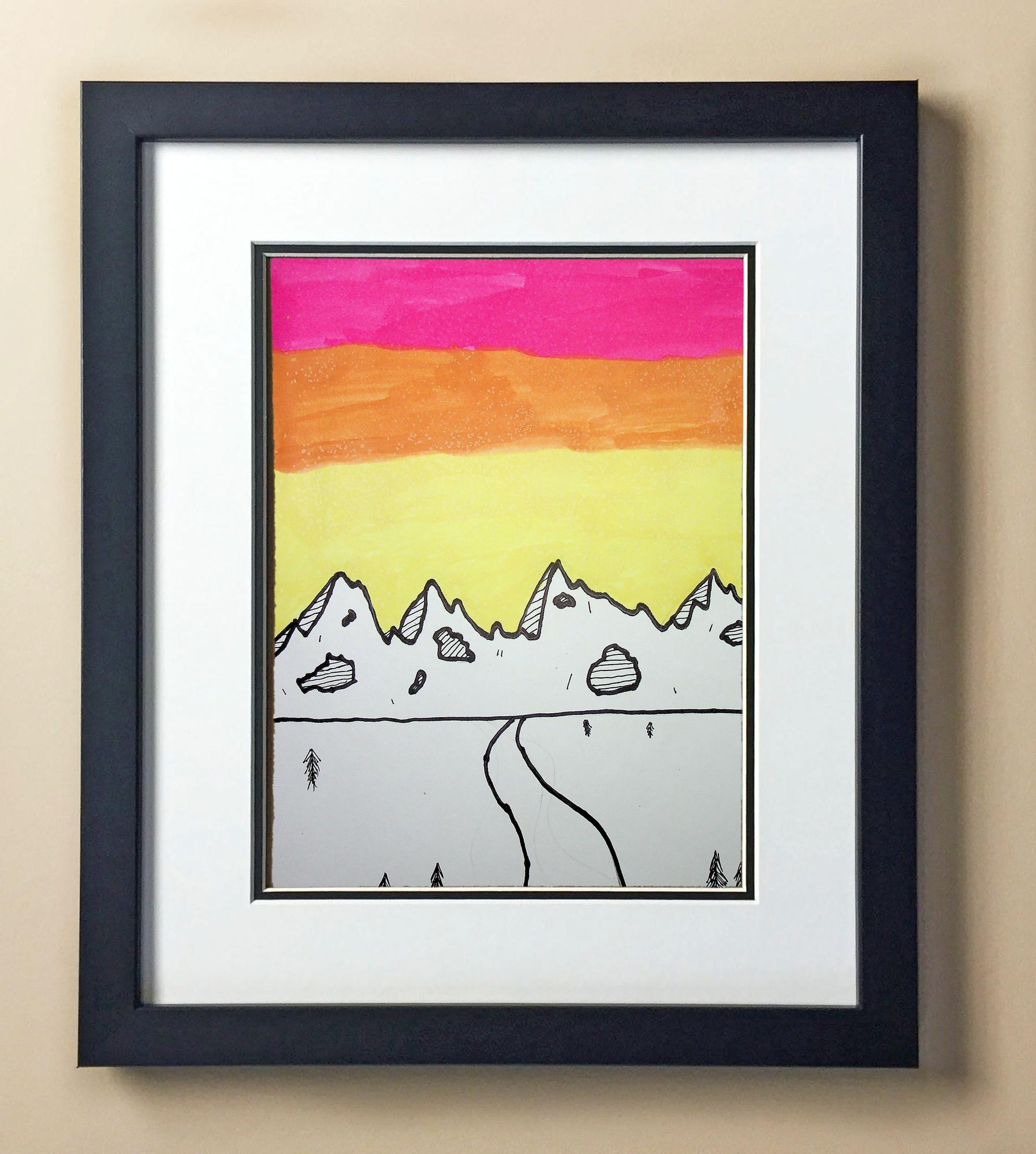 Included with the purchase is the Students Artwork, Frame, double matboard, shatter proof plexiglass, and a ready to hang backerboard with turnbuttons