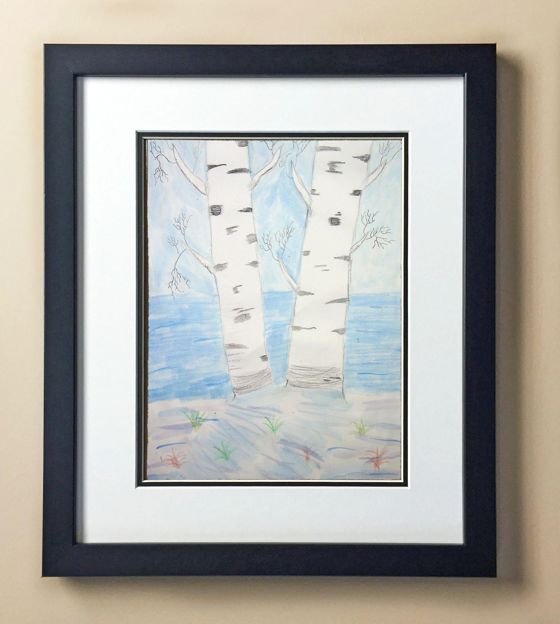 Included with the purchase is the Students Artwork, Frame, double matboard, shatter proof plexiglass, and a ready to hang backerboard with turnbuttons