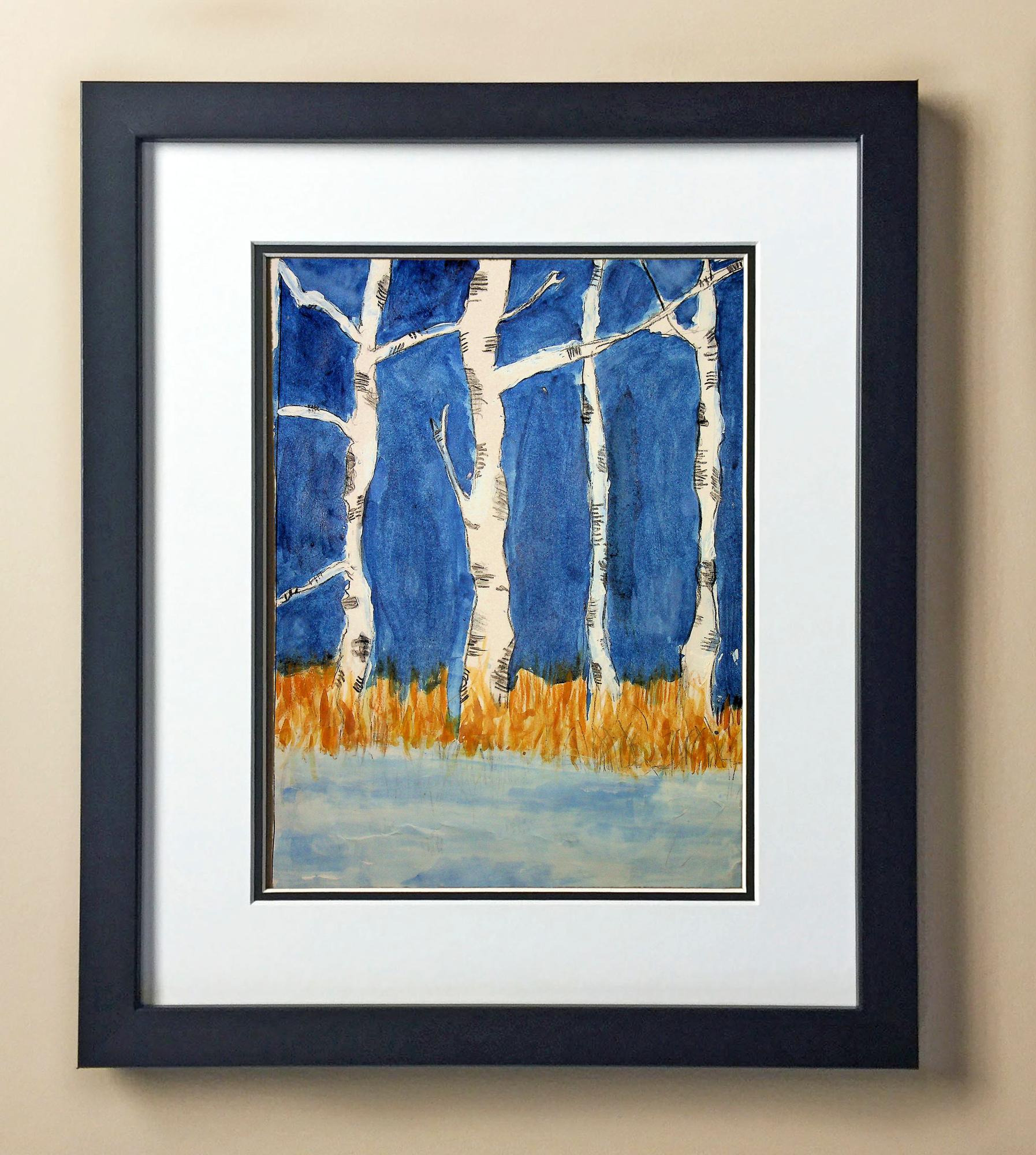 Included with the purchase is the Students Artwork, Frame, double matboard, shatter proof plexiglass, and a ready to hang backerboard with turnbuttons