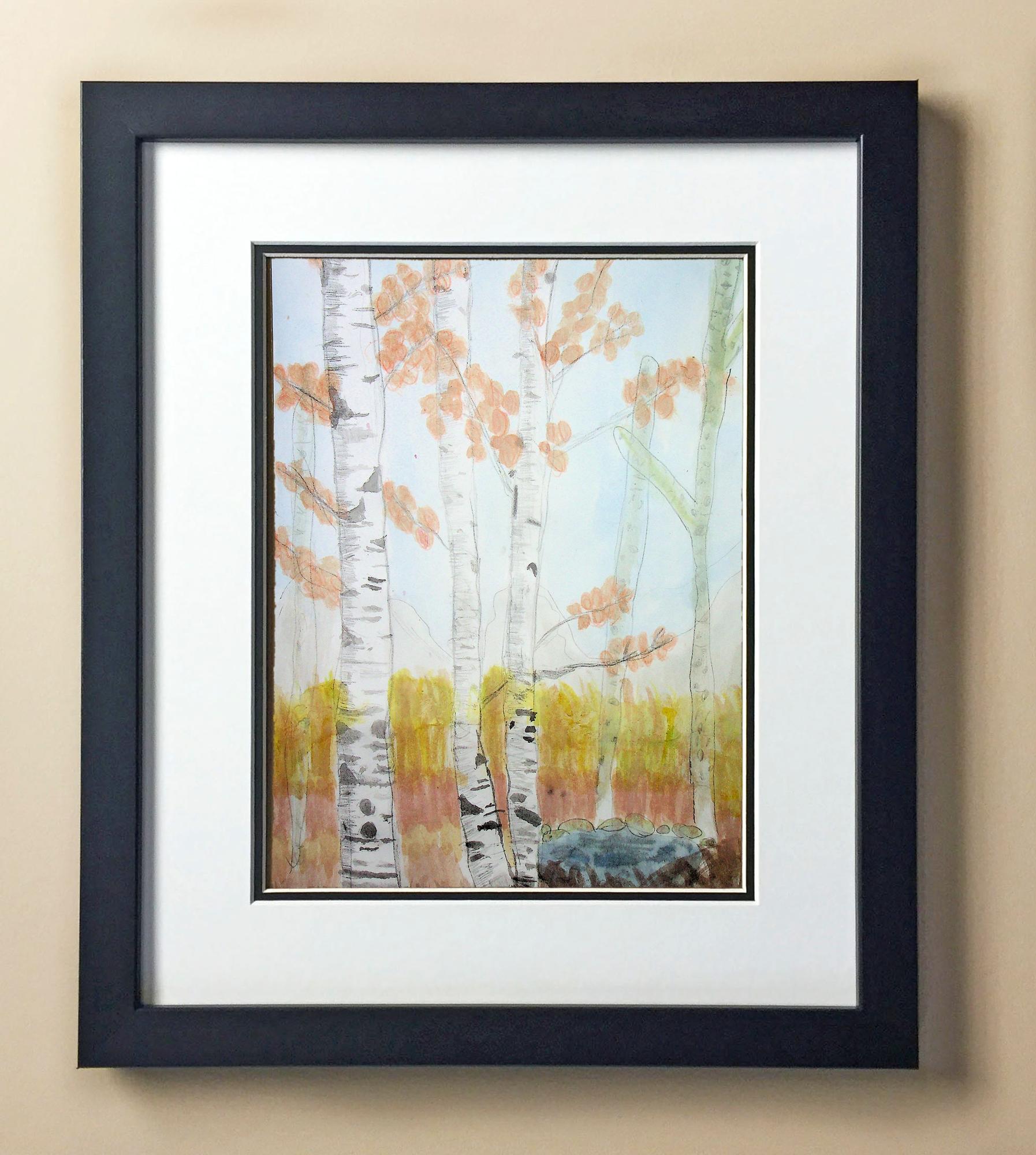 Included with the purchase is the Students Artwork, Frame, double matboard, shatter proof plexiglass, and a ready to hang backerboard with turnbuttons