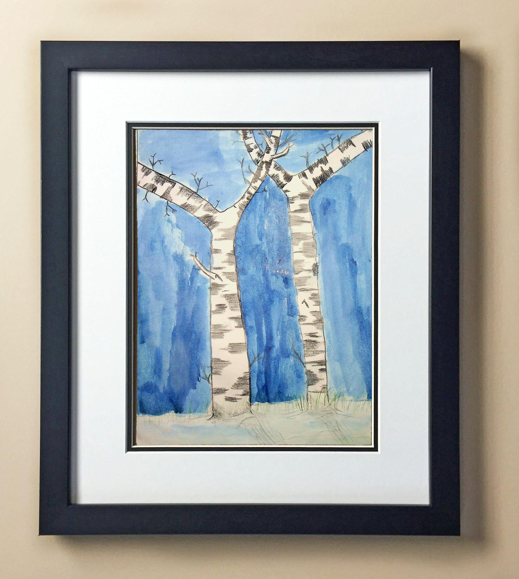 Included with the purchase is the Students Artwork, Frame, double matboard, shatter proof plexiglass, and a ready to hang backerboard with turnbuttons