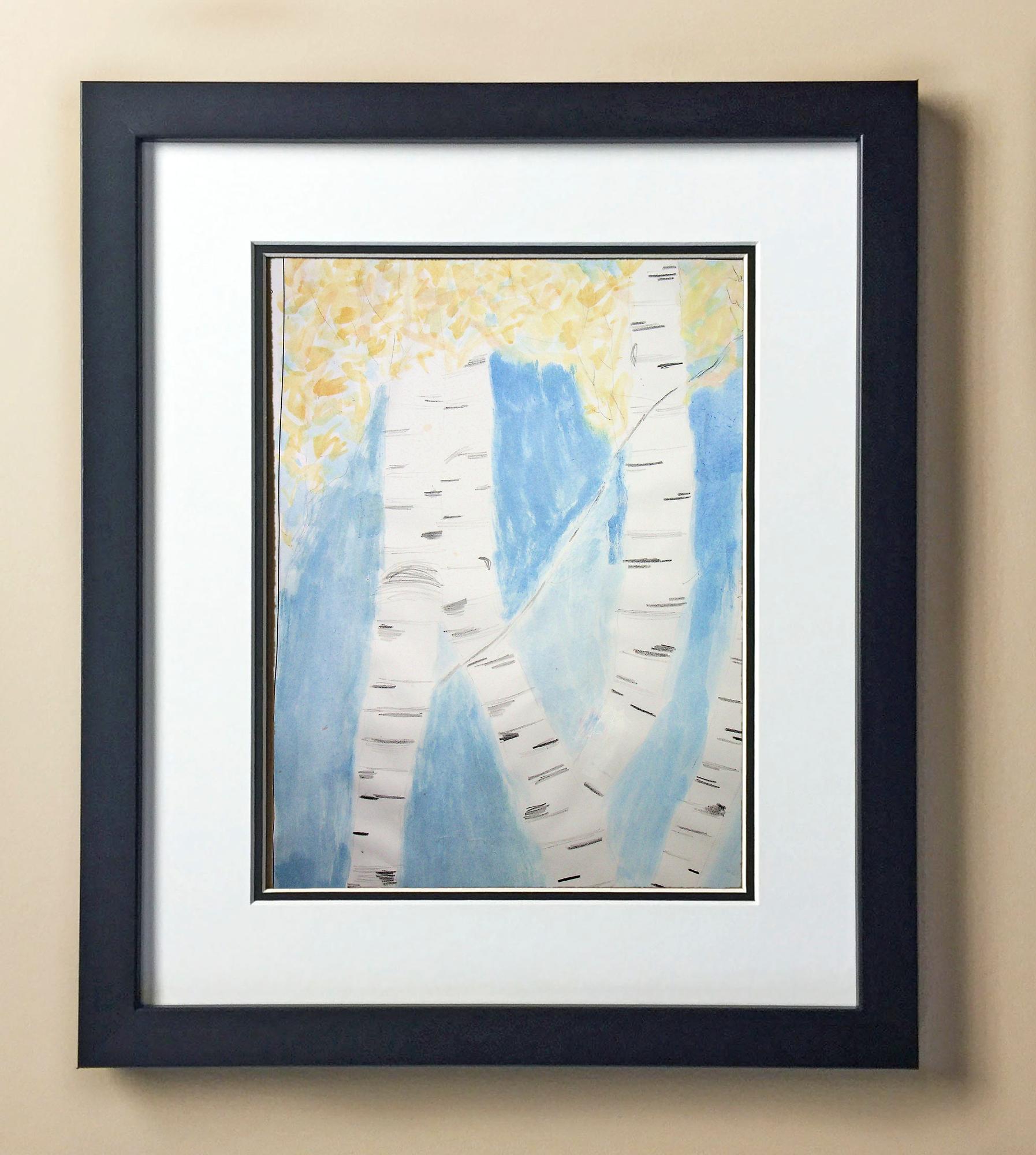 Included with the purchase is the Students Artwork, Frame, double matboard, shatter proof plexiglass, and a ready to hang backerboard with turnbuttons