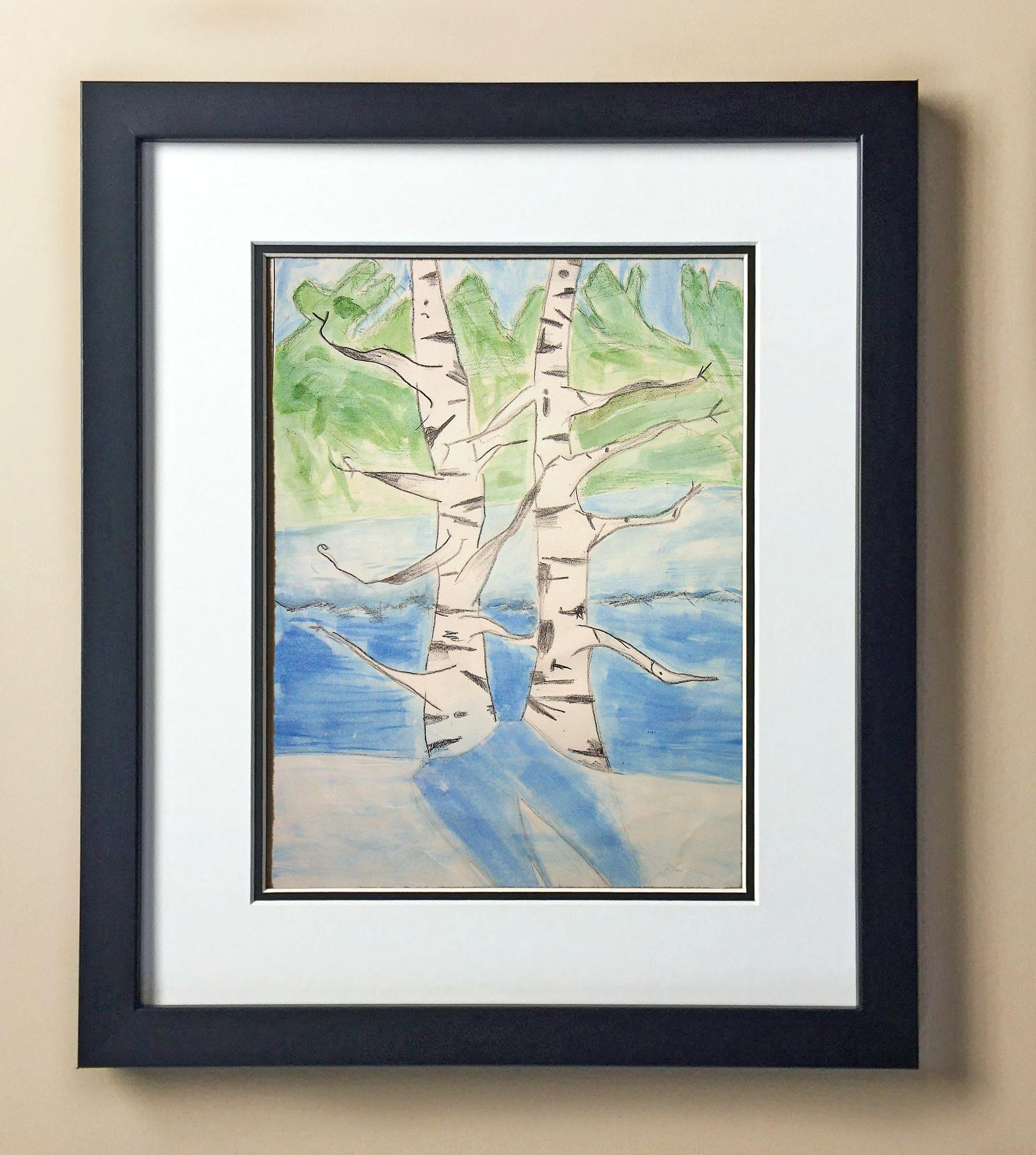 Included with the purchase is the Students Artwork, Frame, double matboard, shatter proof plexiglass, and a ready to hang backerboard with turnbuttons