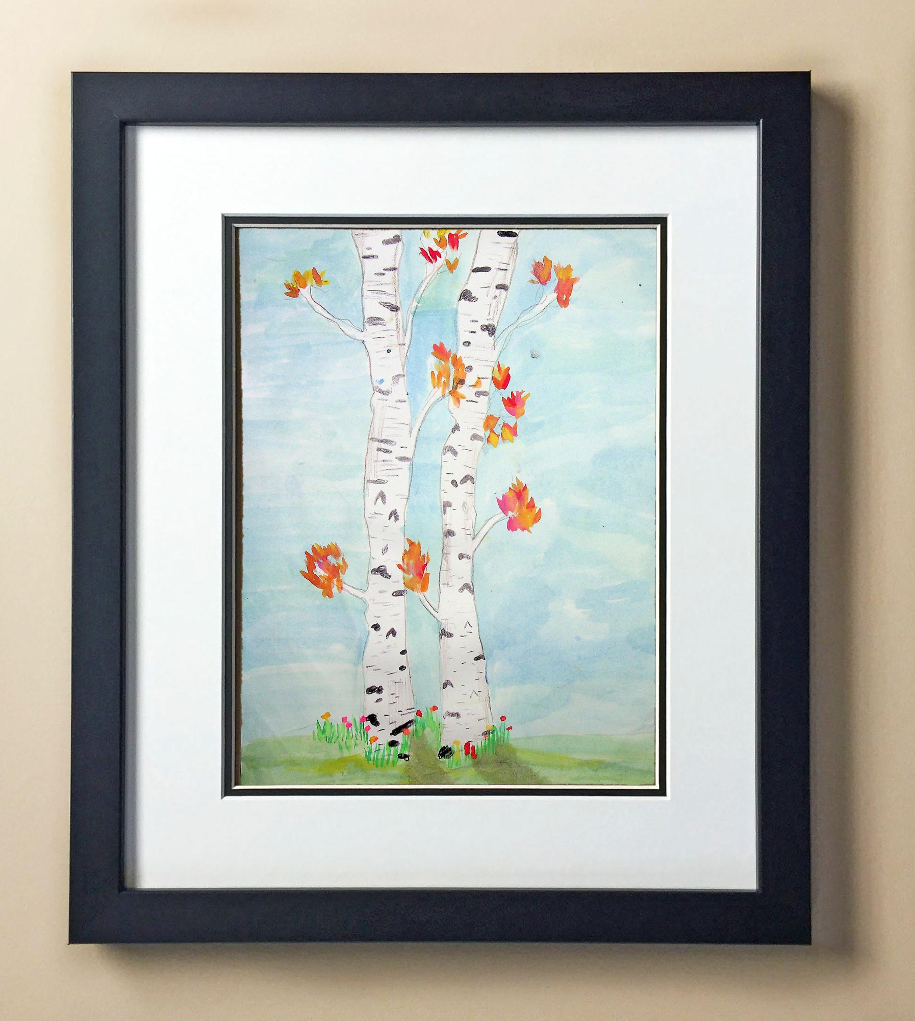 Included with the purchase is the Students Artwork, Frame, double matboard, shatter proof plexiglass, and a ready to hang backerboard with turnbuttons
