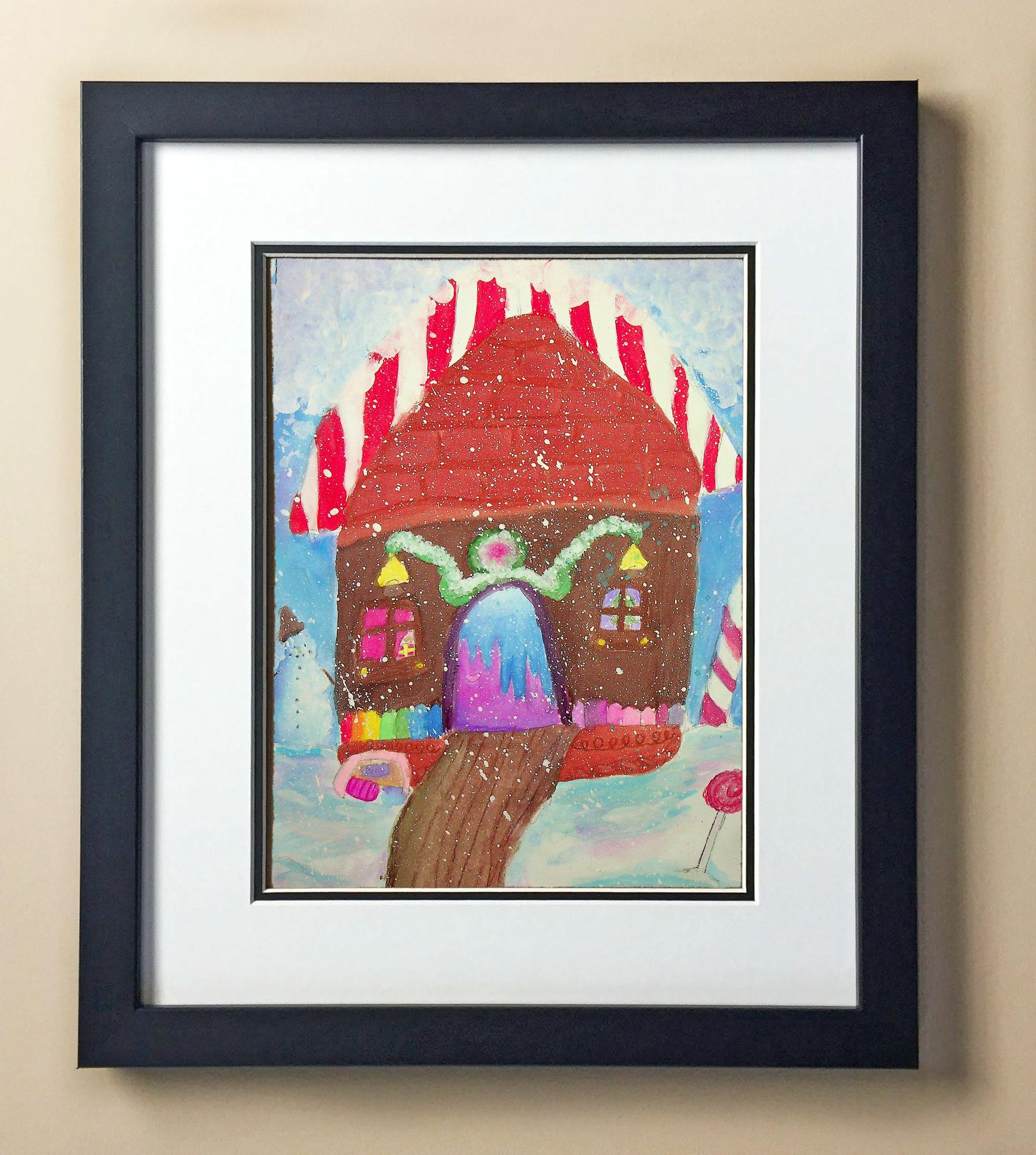 Included with the purchase is the Students Artwork, Frame, double matboard, shatter proof plexiglass, and a ready to hang backerboard with turnbuttons