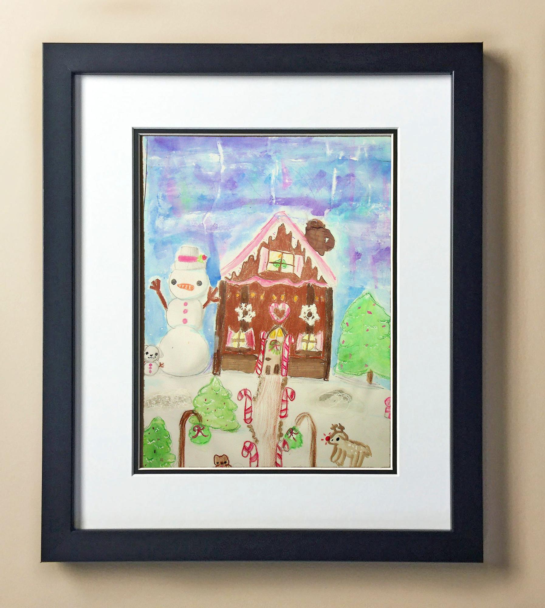 Included with the purchase is the Students Artwork, Frame, double matboard, shatter proof plexiglass, and a ready to hang backerboard with turnbuttons