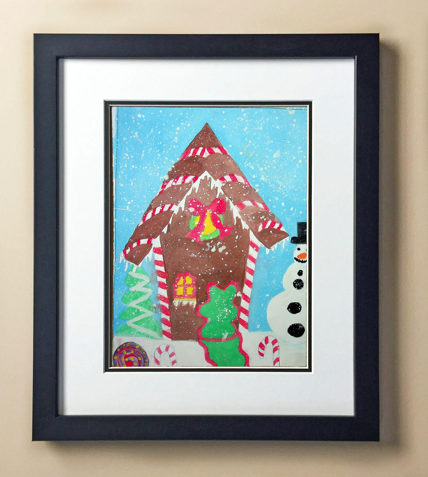 Included with the purchase is the Students Artwork, Frame, double matboard, shatter proof plexiglass, and a ready to hang backerboard with turnbuttons