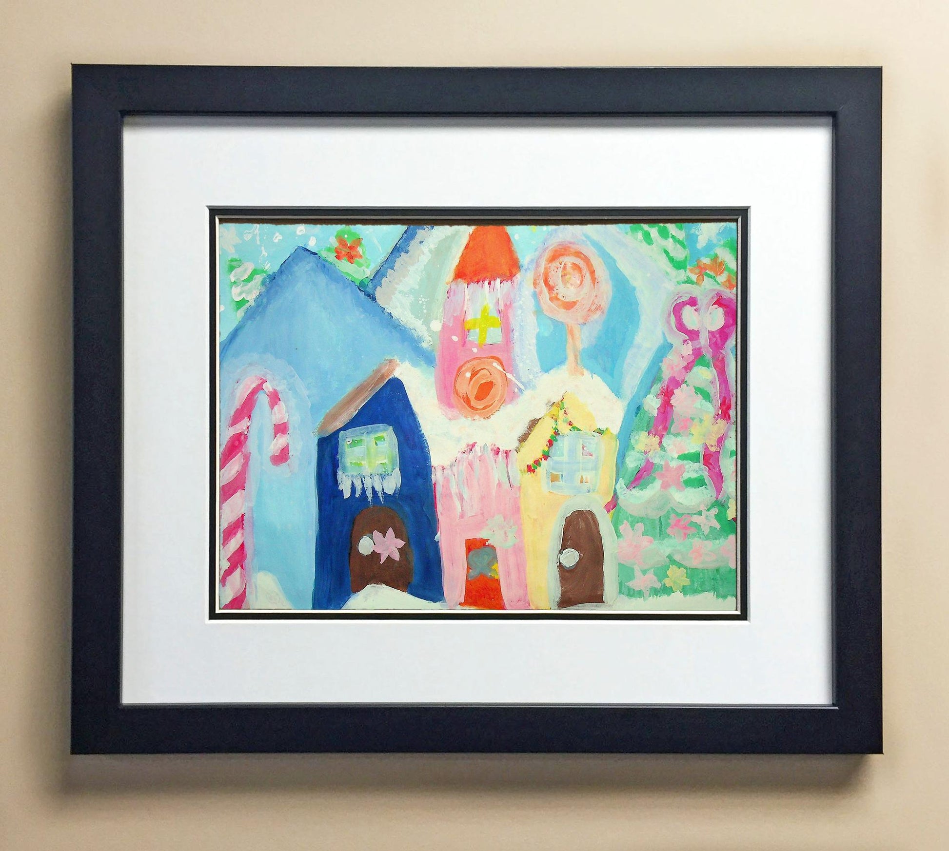 Included with the purchase is the Students Artwork, Frame, double matboard, shatter proof plexiglass, and a ready to hang backerboard with turnbuttons