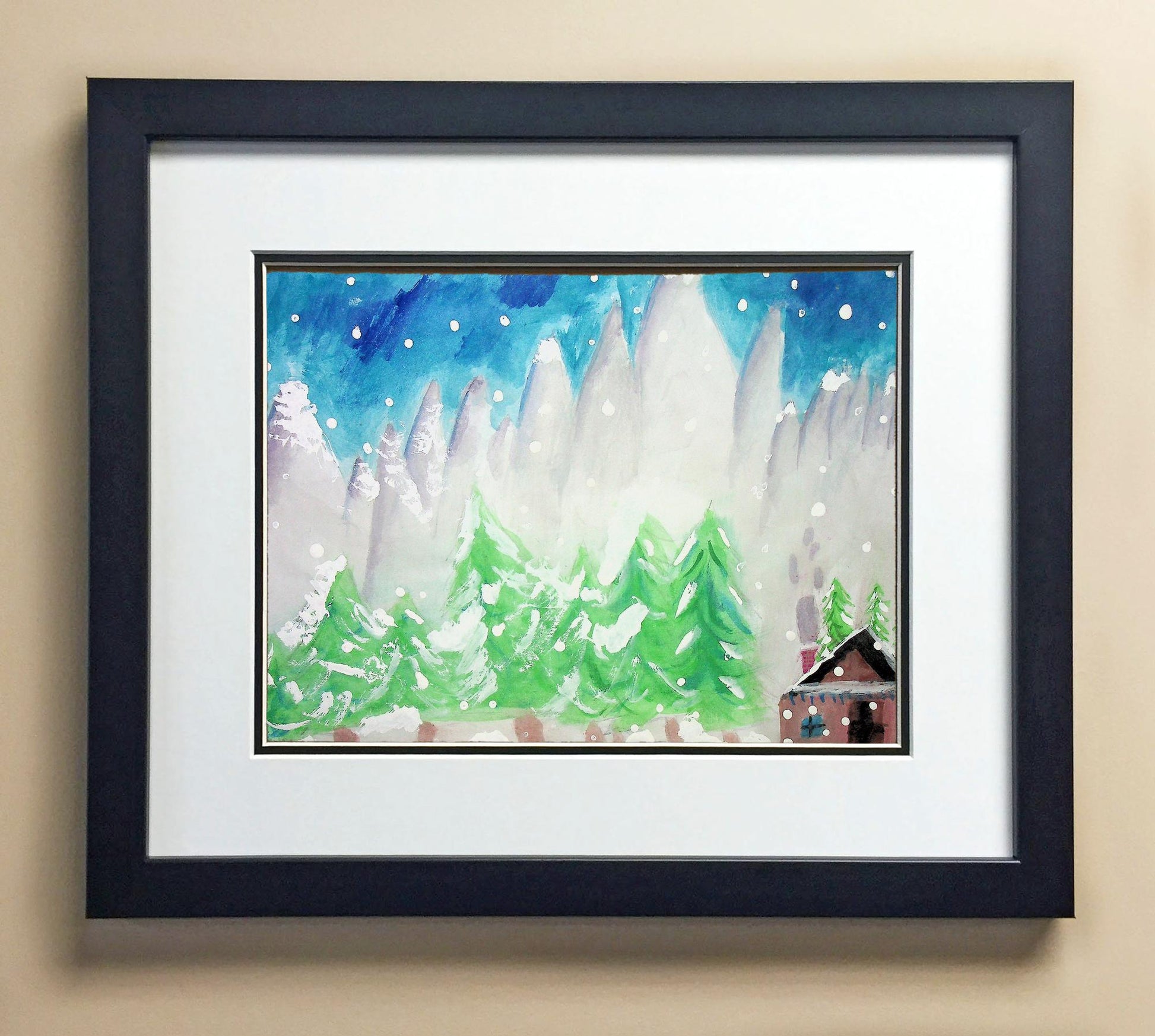 Included with the purchase is the Students Artwork, Frame, double matboard, shatter proof plexiglass, and a ready to hang backerboard with turnbuttons