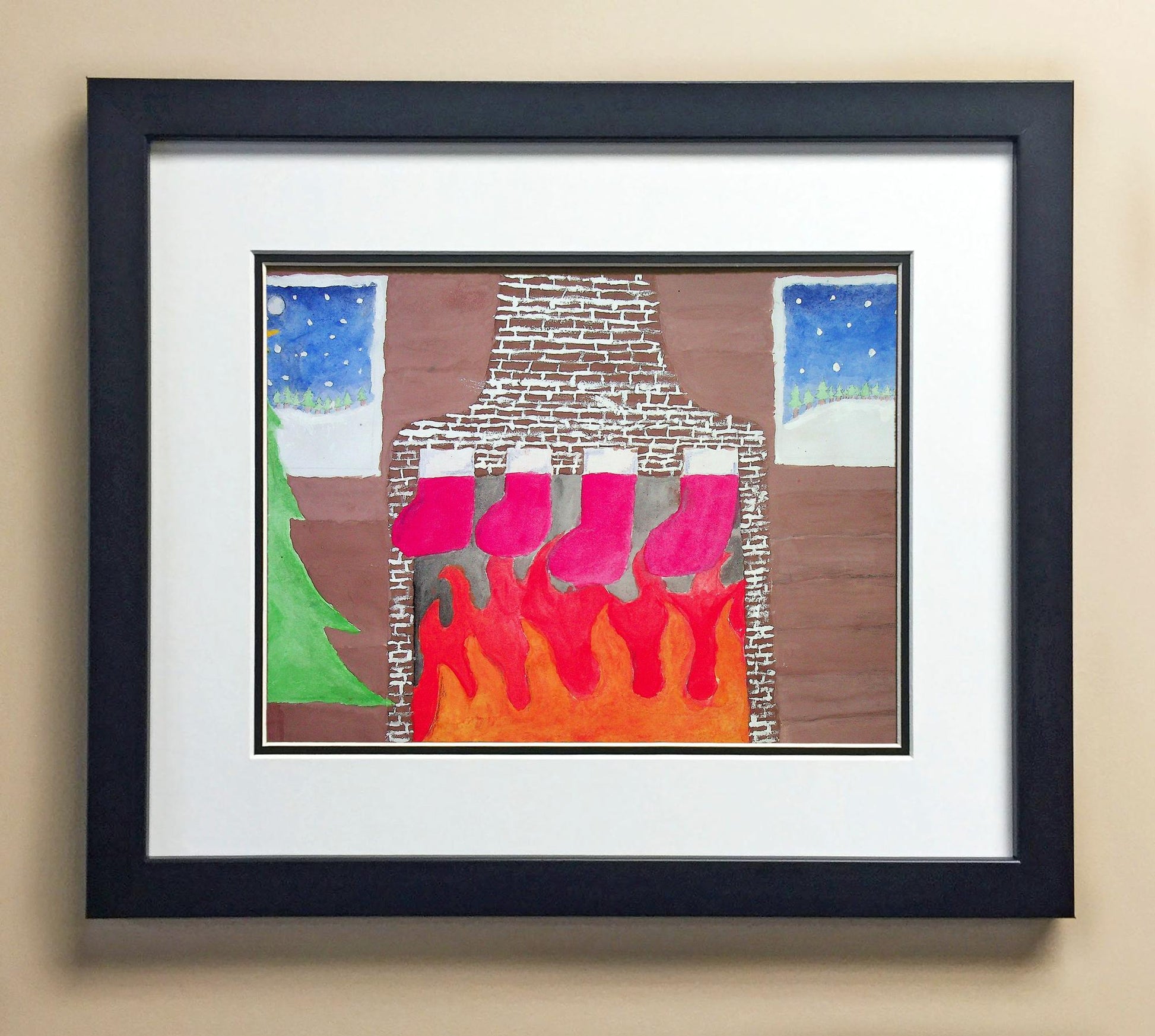 Included with the purchase is the Students Artwork, Frame, double matboard, shatter proof plexiglass, and a ready to hang backerboard with turnbuttons