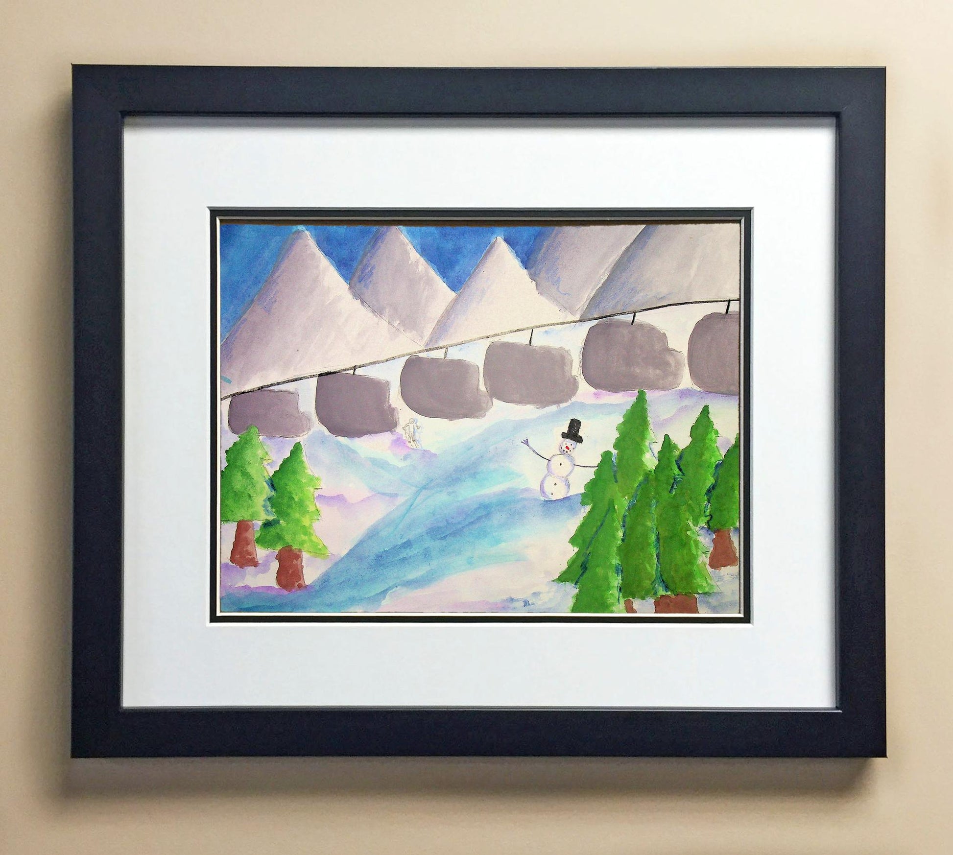 Included with the purchase is the Students Artwork, Frame, double matboard, shatter proof plexiglass, and a ready to hang backerboard with turnbuttons