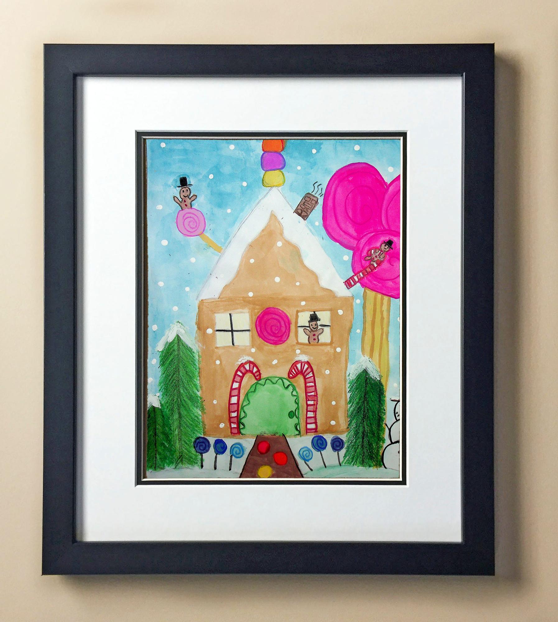 Included with the purchase is the Students Artwork, Frame, double matboard, shatter proof plexiglass, and a ready to hang backerboard with turnbuttons