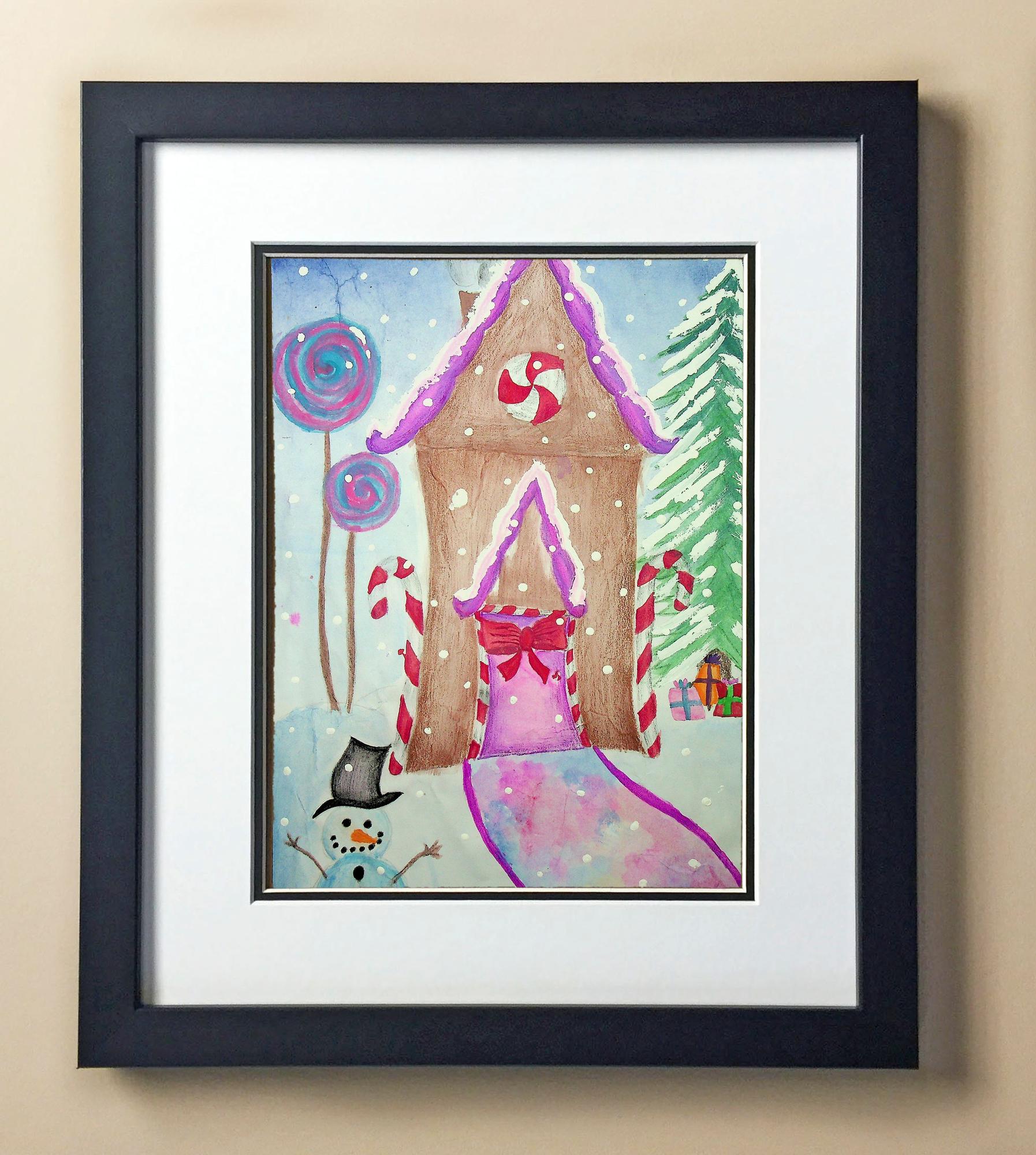 Included with the purchase is the Students Artwork, Frame, double matboard, shatter proof plexiglass, and a ready to hang backerboard with turnbuttons