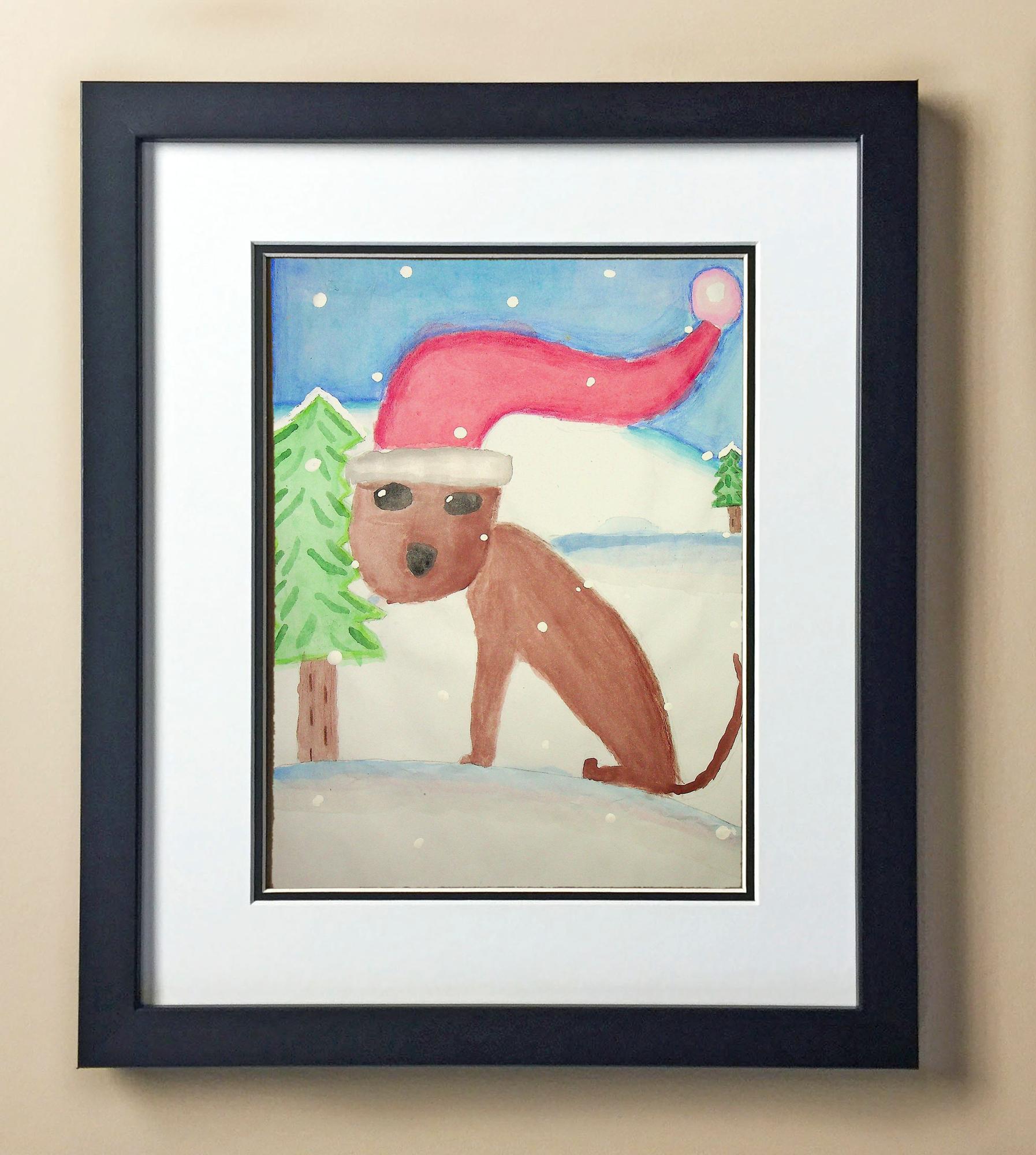 Included with the purchase is the Students Artwork, Frame, double matboard, shatter proof plexiglass, and a ready to hang backerboard with turnbuttons