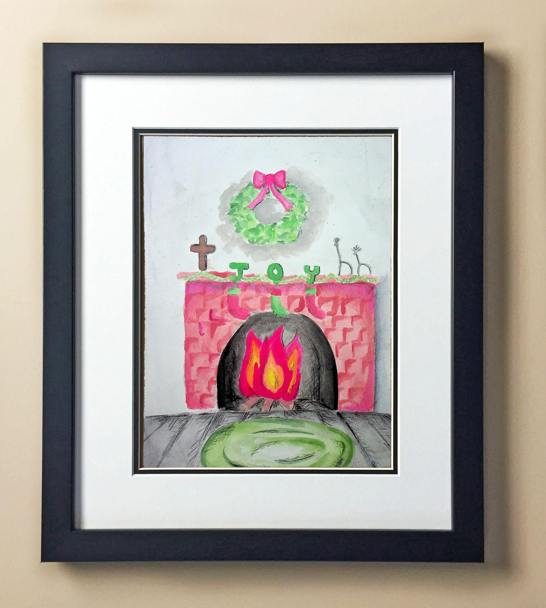 Included with the purchase is the Students Artwork, Frame, double matboard, shatter proof plexiglass, and a ready to hang backerboard with turnbuttons