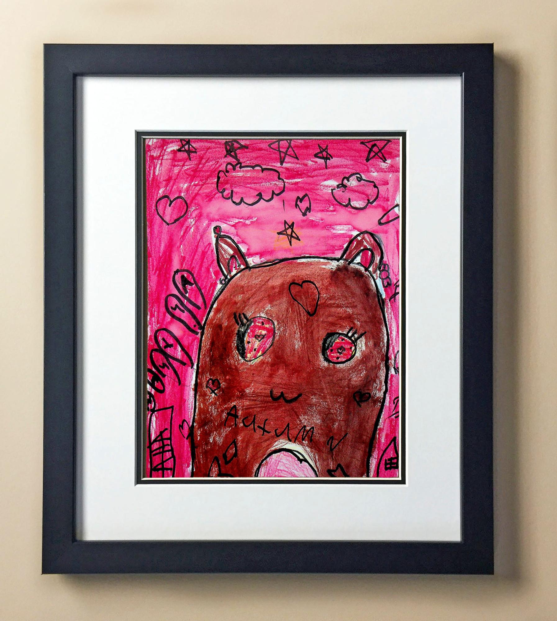Included with the purchase is the Students Artwork, Frame, double matboard, shatter proof plexiglass, and a ready to hang backerboard with turnbuttons