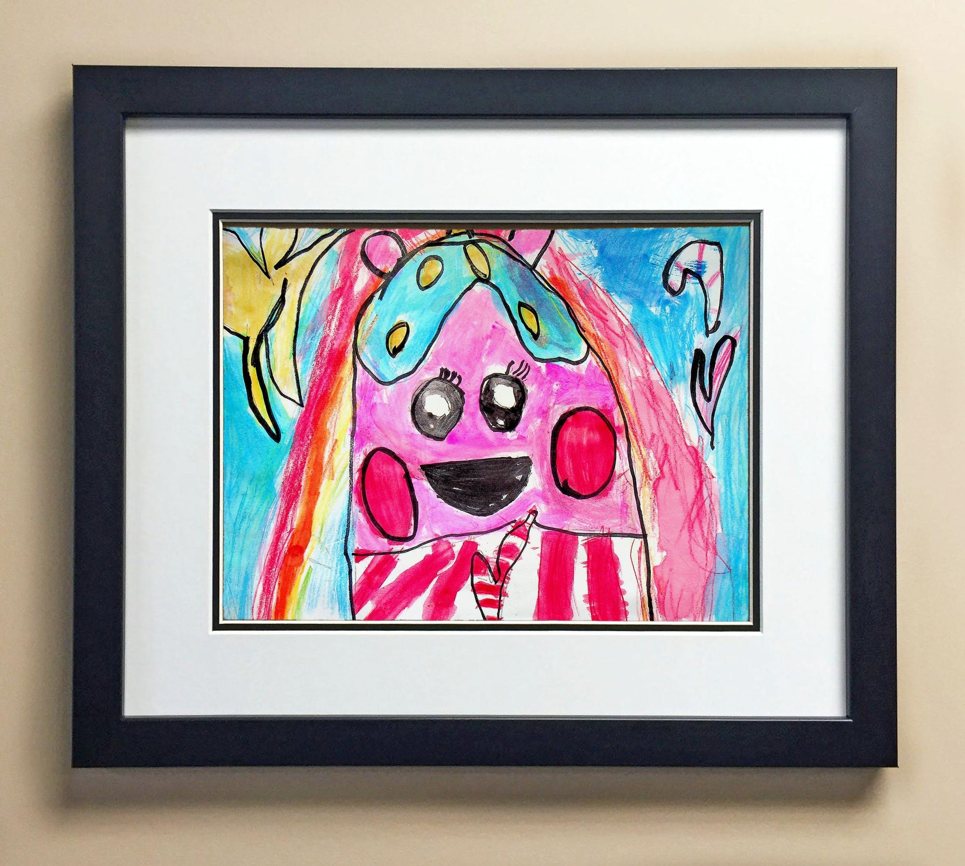 Included with the purchase is the Students Artwork, Frame, double matboard, shatter proof plexiglass, and a ready to hang backerboard with turnbuttons
